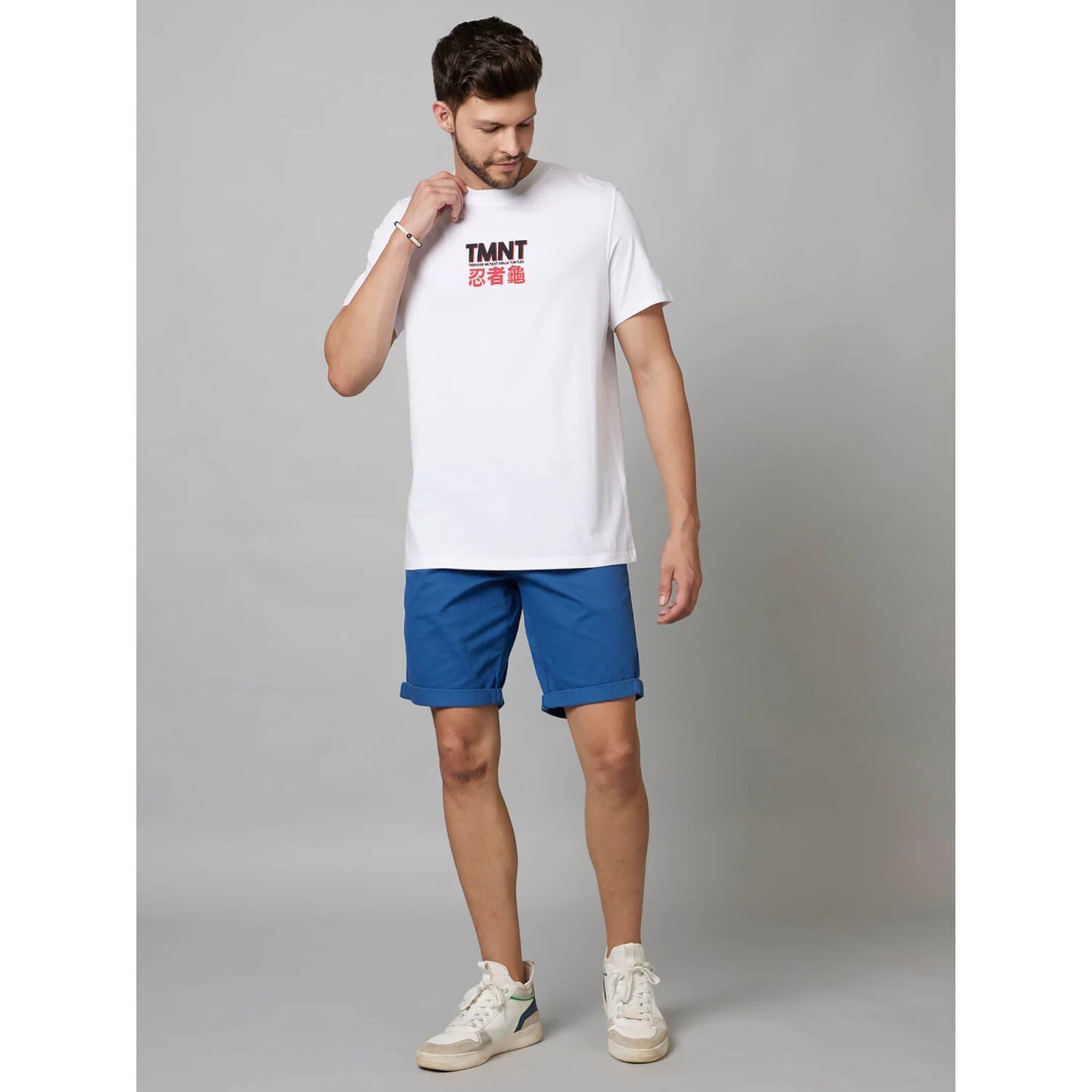Discover the Ninja Turtle White Cotton T-shirt from Celio, a perfect blend of comfort and style for the modern man. Crafted from soft, breathable cotton, this tee offers ultimate comfort while adding a touch of youthful energy to your casual wardrobe. The pristine white colour and classic short-sleeved design make it versatile and easy to style, whether hanging out with friends, running errands, or enjoying a relaxed weekend. With its bold design and homage to the beloved heroes in a half-shell, this T-shirt is a tribute to their legendary adventures, brotherhood, and sense of justice. Whether you’re a longtime fan or just love the fun, adventurous vibe they represent, this tee lets you bring a piece of their world into your everyday life. Perfect for casual outings, this T-shirt is an ideal choice for any fan who wants to wear their love for the Ninja Turtles with pride. Disclaimer: All other items in the image are only for display purposes and will not be a part of the delivery content. Product colour may slightly vary due to photographic lighting sources. Country of Origin - India.