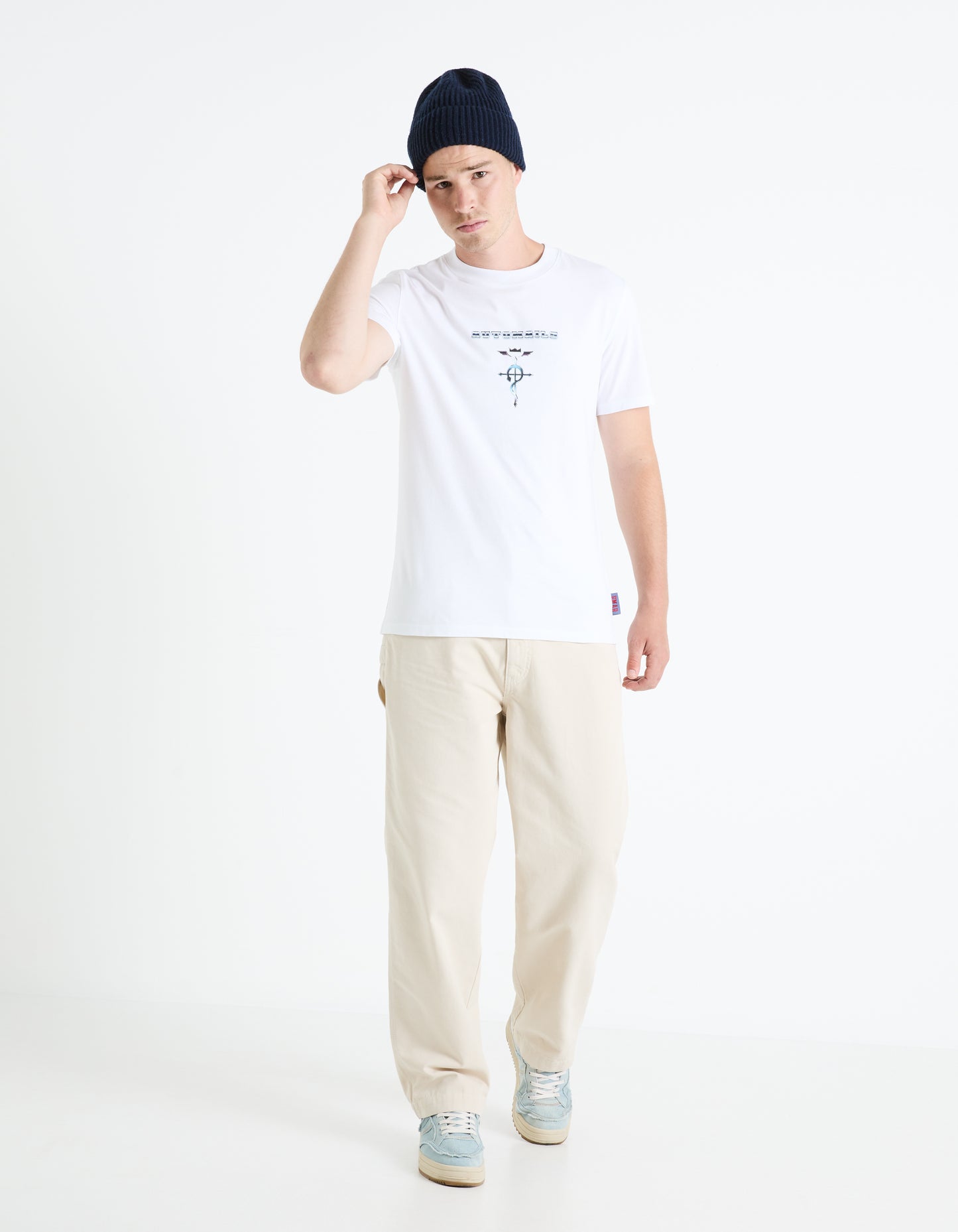Elevate your casual wardrobe with this sleek and stylish White Printed Cotton T-shirt. Designed with a unique and eye-catching print, it effortlessly blends comfort with fashion, making it a must-have for any men's collection. The soft cotton fabric ensures a cozy fit for all-day wear, whether out with friends or enjoying a laid-back day at home. With its breathable material and short sleeves, this T-shirt is perfect for warmer weather, offering style and comfort. The clean, white design adds a fresh touch to your outfit, while the bold print brings a sense of personality and flair. Whether pairing it with jeans, shorts, or casual trousers, this White Printed Cotton T-shirt will seamlessly complement your everyday look. Make a statement without saying a word and enjoy the perfect mix of casual and relaxed. Disclaimer: All other items in the image are only for display purposes and will not be a part of the delivery content. Product color may vary slightly due to photographic lighting sources. Country of Origin - India. LDEFMA