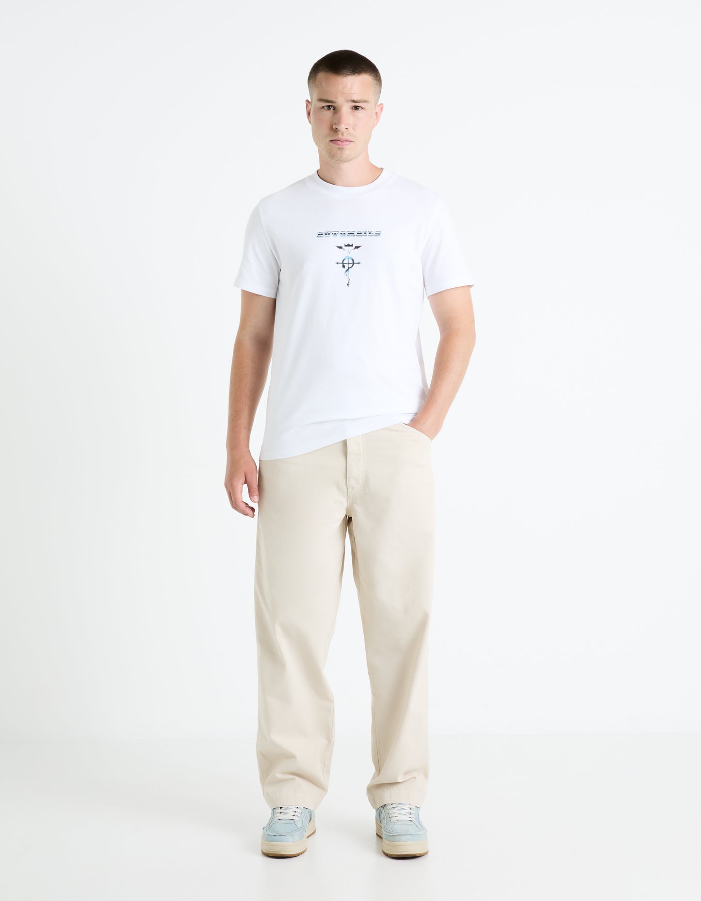 Celio* Fullmetal Alchemist Regular Fit Cotton White T-Shirts