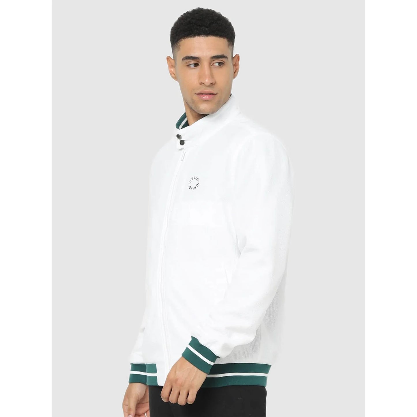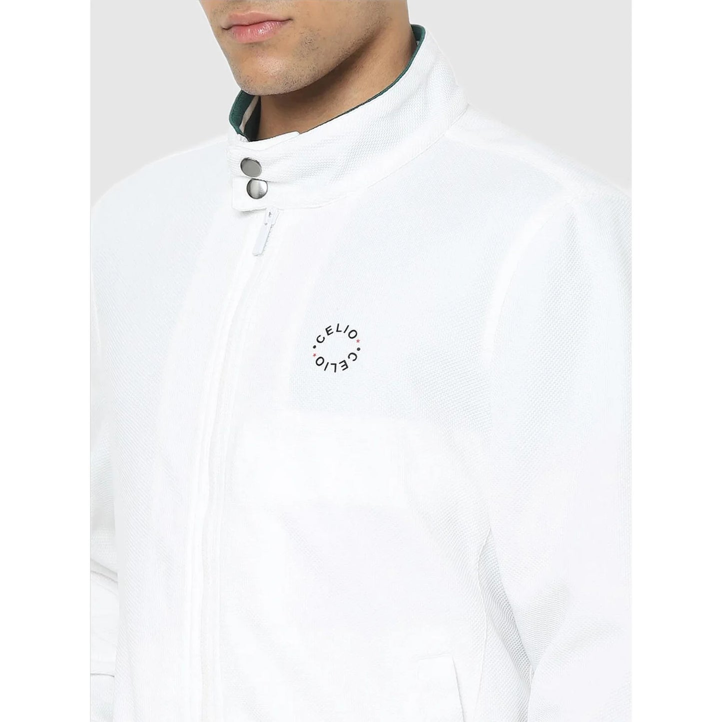 Elevate your casual wardrobe with the Celio White Solid Regular Fit Jacket. This stylish men's jacket, crafted from comfortable cotton, features long sleeves and a crisp white color. Disclaimer: All other items in the image are only for display purposes and will not be a part of the delivery content. Product colour may slightly vary due to photographic lighting sources. Country of Origin - India.