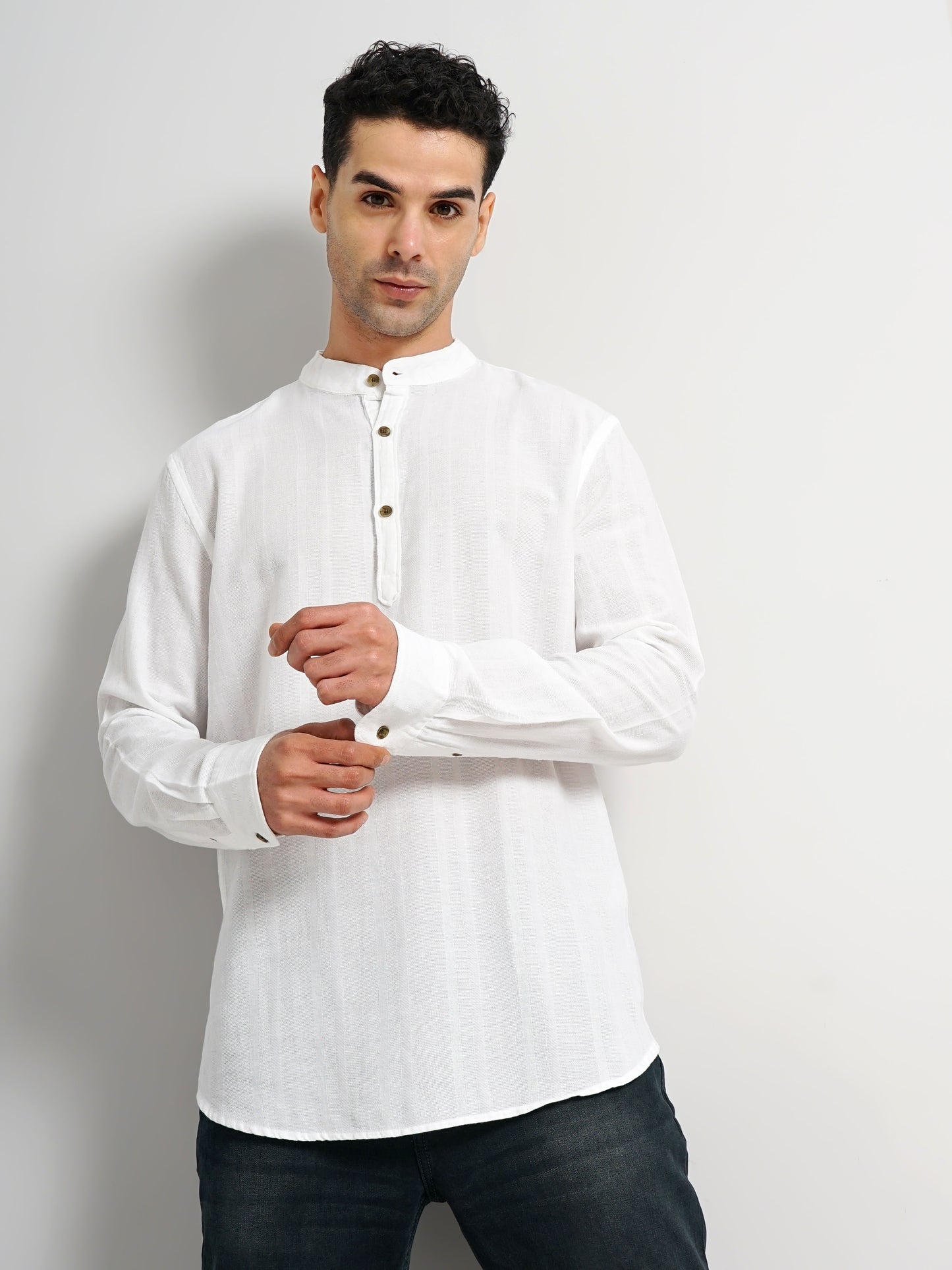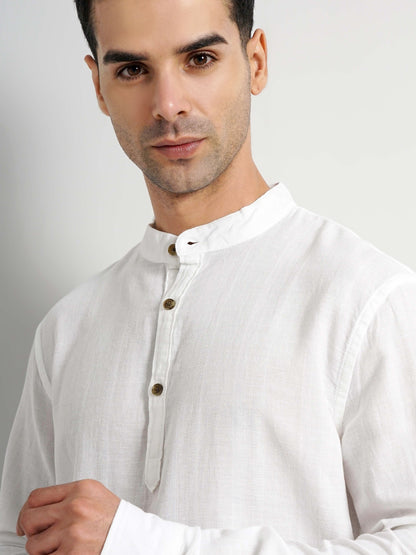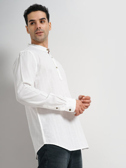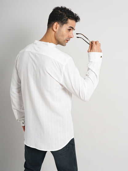 Elevate your casual wardrobe with the Celio Men White Solid Regular Fit Cotton Shirt. This long-sleeve shirt, crafted from breathable cotton, offers style and comfort for any casual occasion. Disclaimer: All other items in the image are only for display purposes and will not be a part of the delivery content. Product colour may slightly vary due to photographic lighting sources. Country of Origin - India.