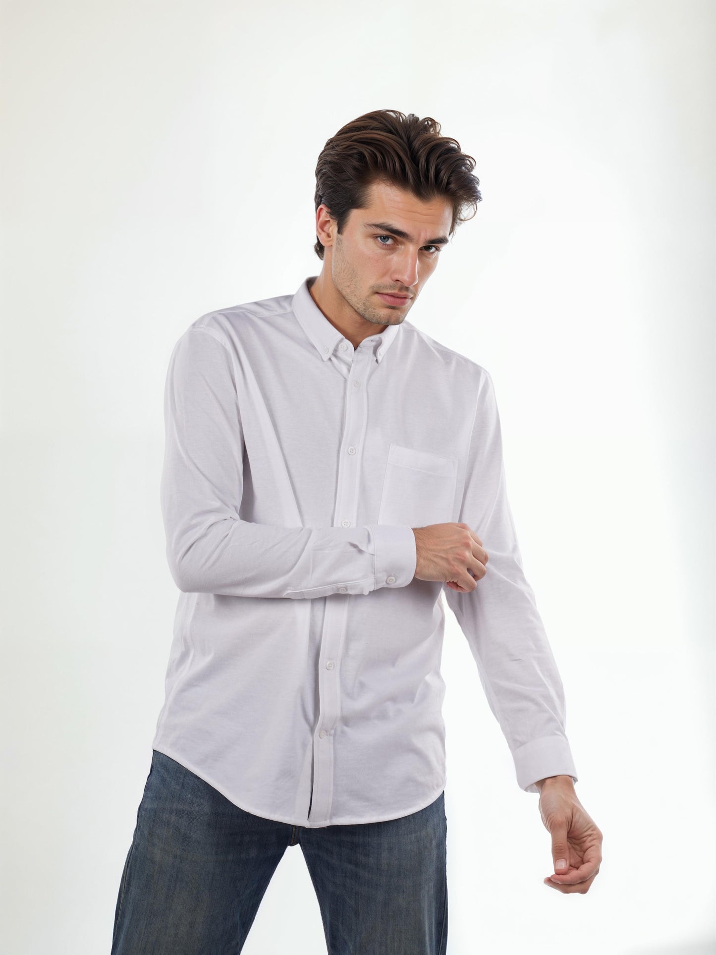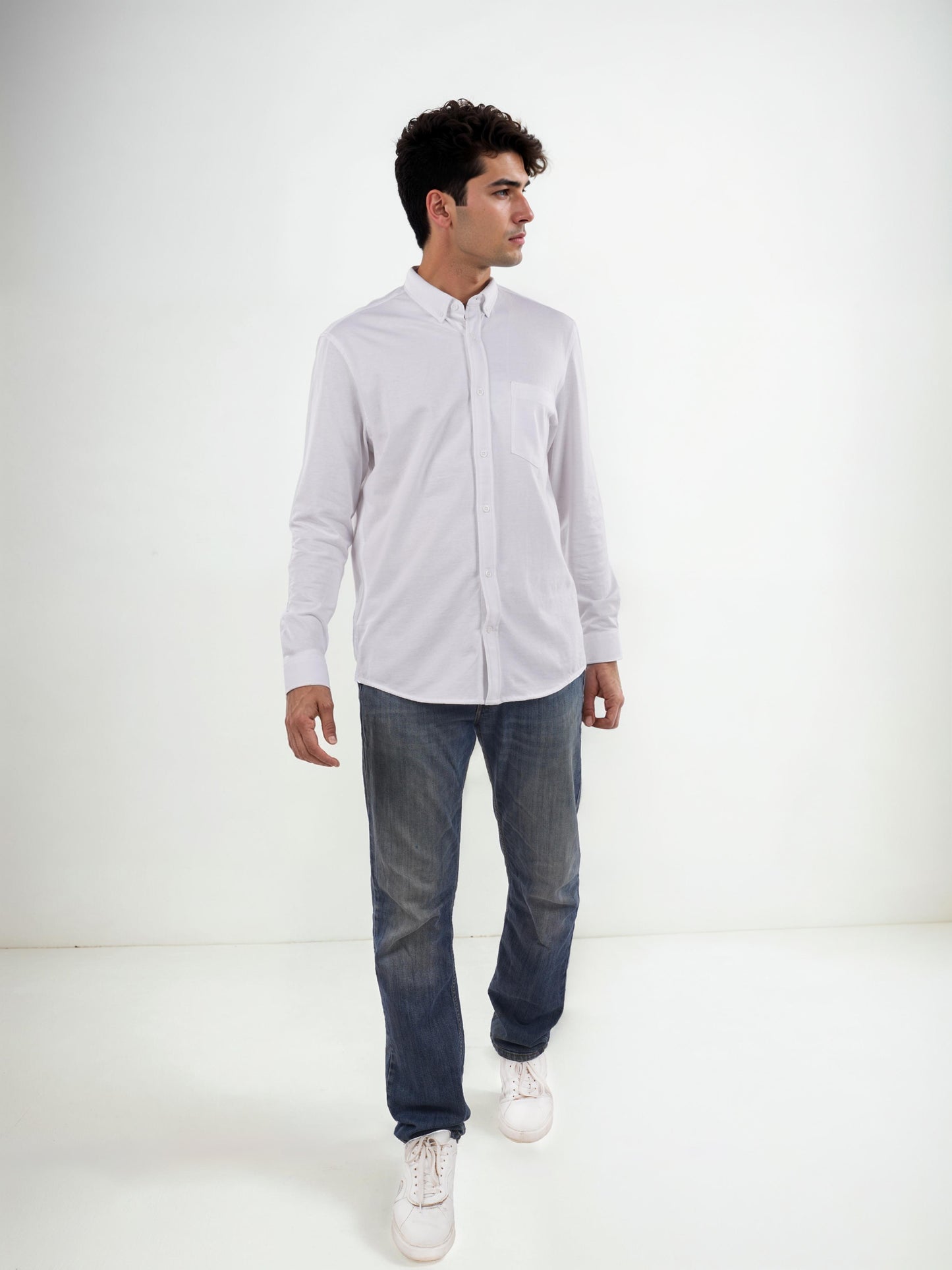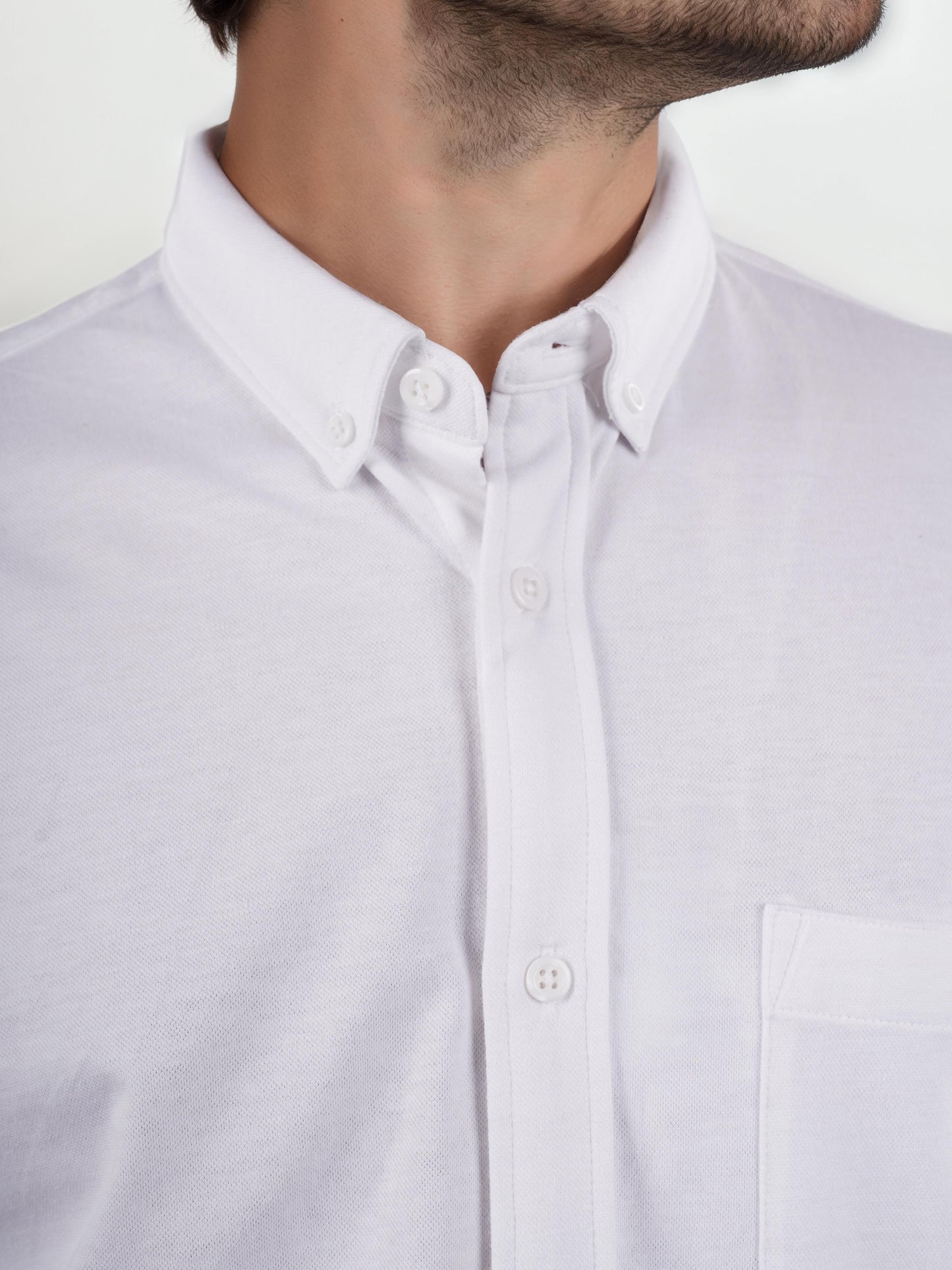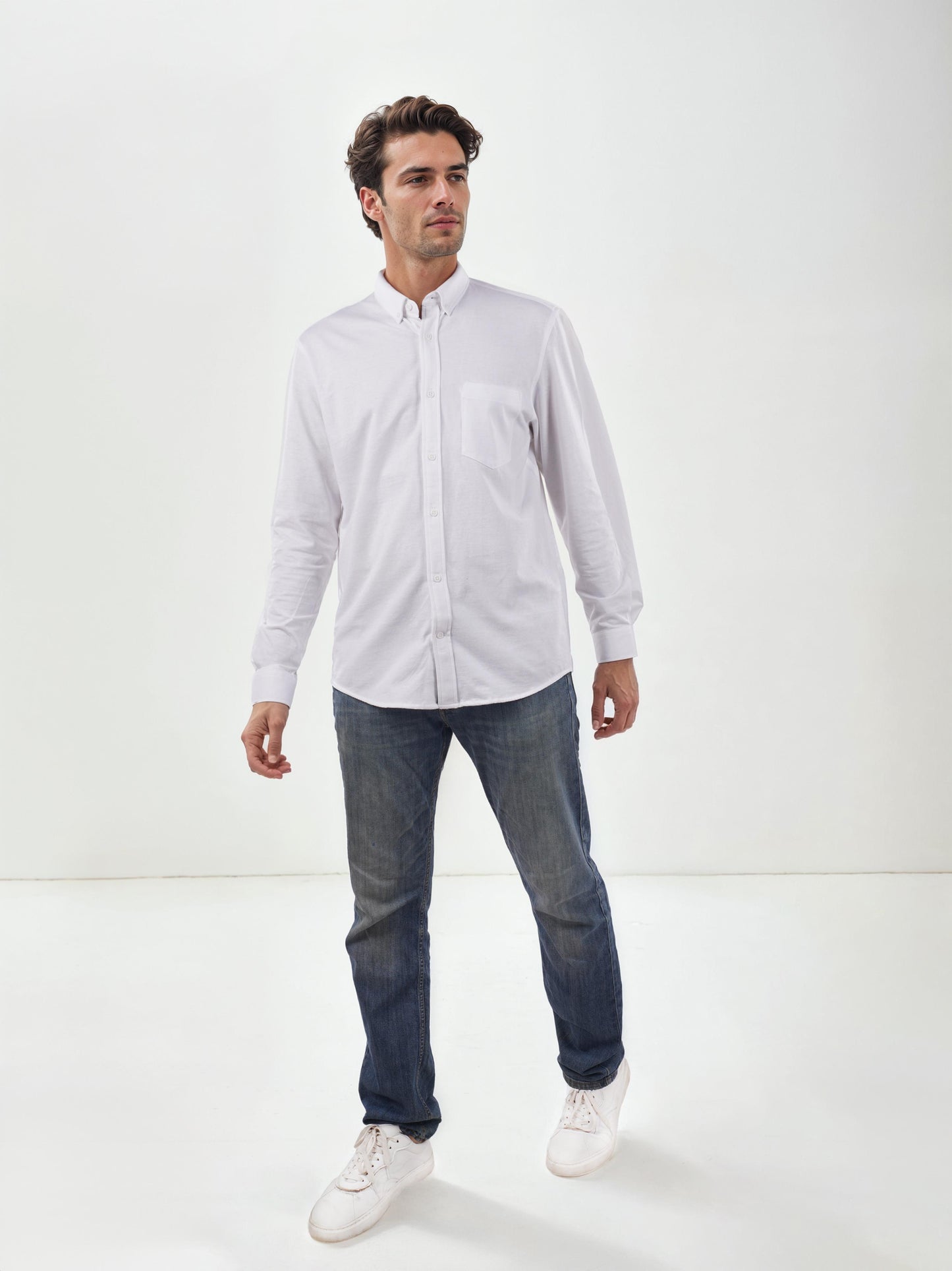 Discover the ultimate in casual style with the Celio Men's White Button-Down Collar Shirt. Crafted from soft cotton, this regular fit shirt features long sleeves, perfect for everyday wear. Disclaimer: All other items in the image are only for display purposes and will not be a part of the delivery content. Product colour may slightly vary due to photographic lighting sources. Country of Origin - India.