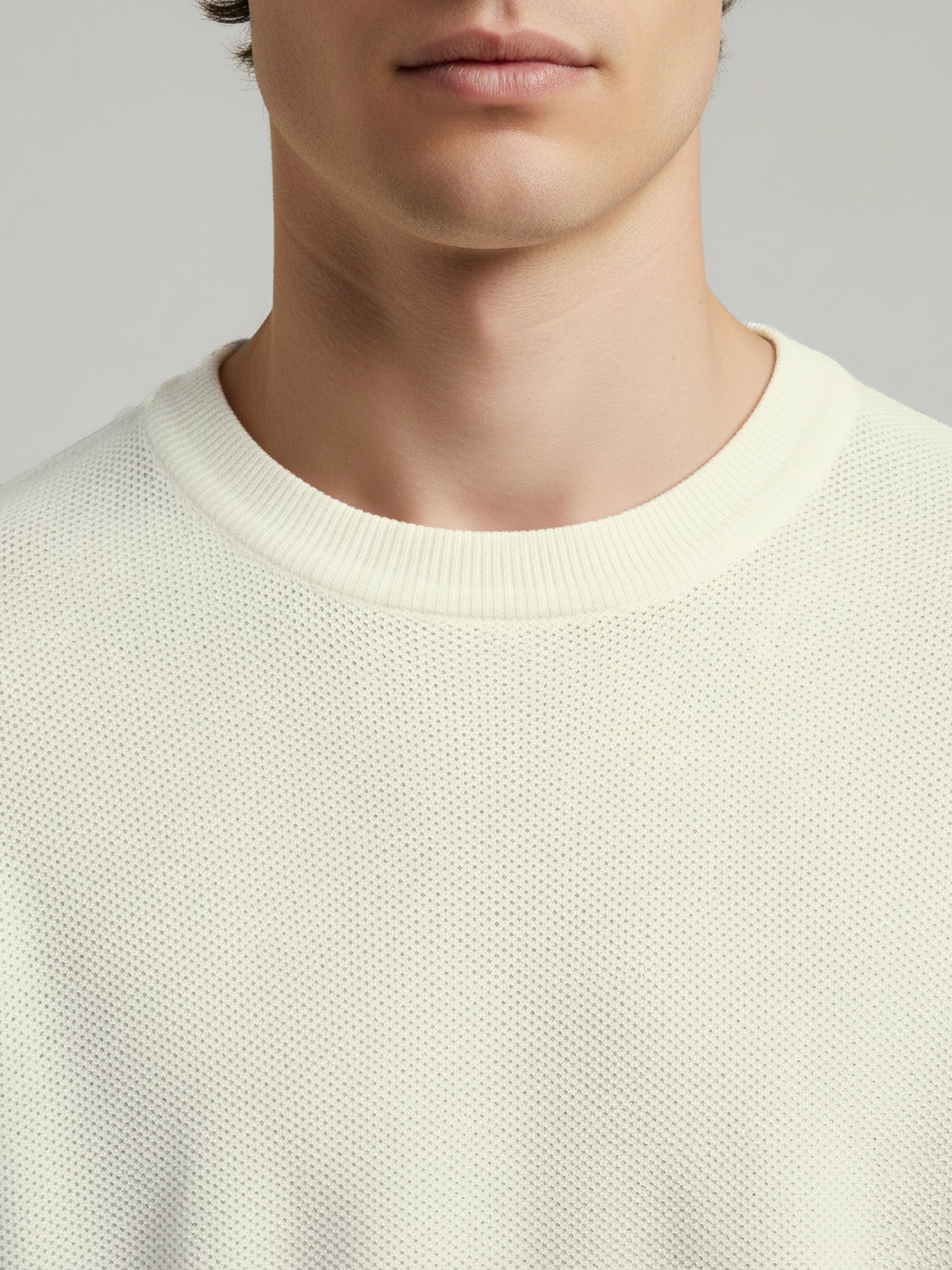 *Celio Men White Solid Regular Fit Cotton Sweaters