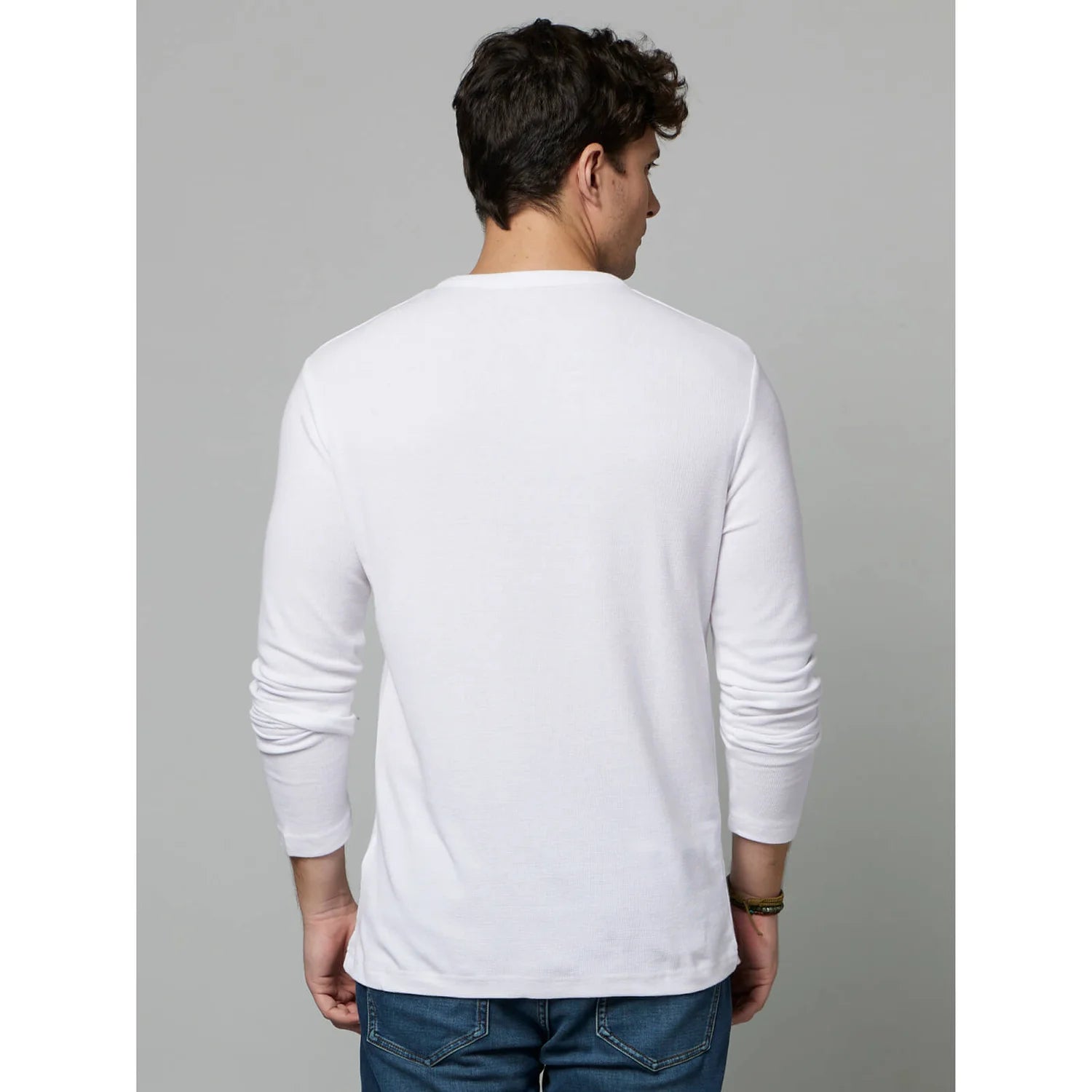 Elevate your casual wardrobe with the Celio Solid White Long Sleeves Henley Neck T-shirt. Made from soft cotton, this White-colored tee is perfect for men seeking comfort and style. Disclaimer: All other items in the image are only for display purposes and will not be a part of the delivery content. Product colour may slightly vary due to photographic lighting sources. Country of Origin - India.