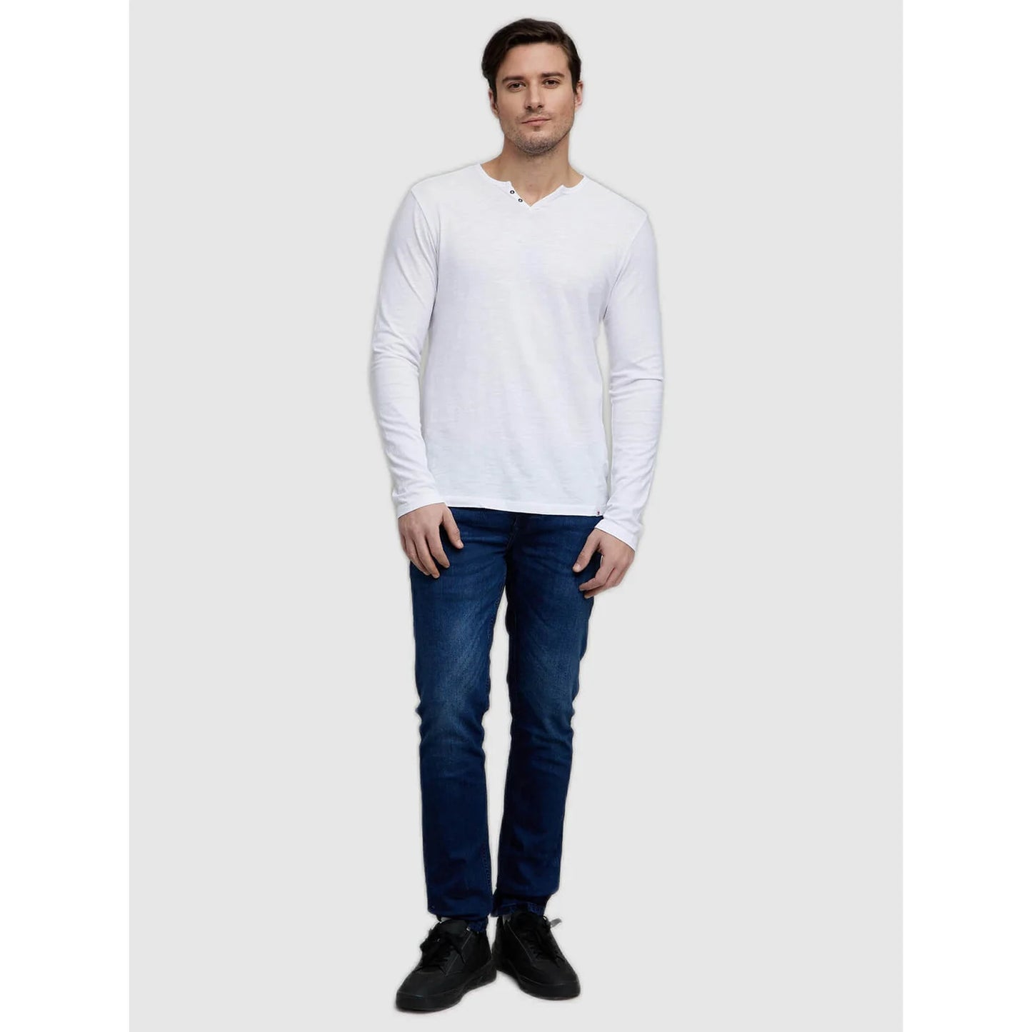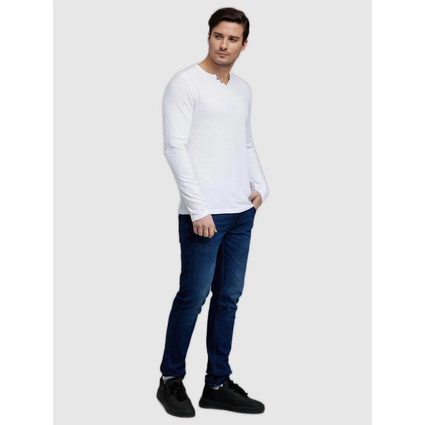 Elevate your casual wardrobe with the Celio Men's White Solid T-Shirt. Made from soft cotton, this long-sleeve tee offers comfort and style for every occasion. Disclaimer: All other items in the image are only for display purposes and will not be a part of the delivery content. Product colour may slightly vary due to photographic lighting sources. Country of Origin - India.