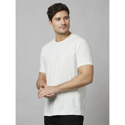 Celio* Solid Regular Fit Cotton White T-Shirt