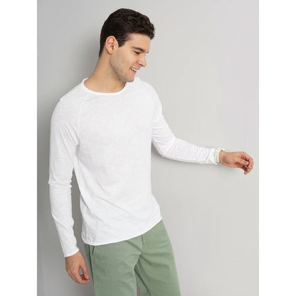 Upgrade your casual wardrobe with the Celio Fehugo White T-Shirt in white. Crafted from soft cotton, it features long sleeves for a relaxed fit, perfect for everyday wear. Disclaimer: All other items in the image are only for display purposes and will not be a part of the delivery content. Product colour may slightly vary due to photographic lighting sources. Country of Origin - India.