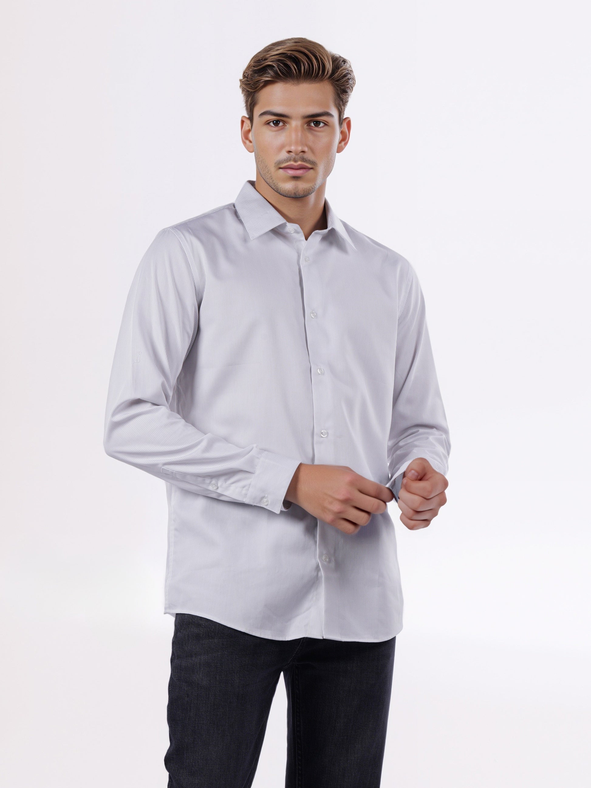 Celio Men White Solid Slim Fit Shirt crafted from cotton, perfect for casual occasions. Features long sleeves and a stylish fit for a sophisticated look. Disclaimer: All other items in the image are only for display purposes and will not be a part of the delivery content. Product colour may slightly vary due to photographic lighting sources. Country of Origin - India.