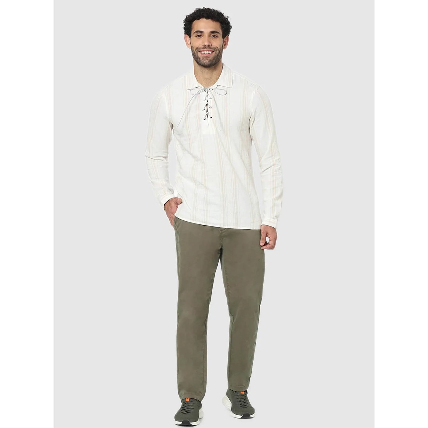 Elevate your casual wardrobe with the Celio White Vertical-Stripes Regular Fit Shirt. Made from comfortable cotton, it features long sleeves and a stylish striped design for men. Disclaimer: All other items in the image are only for display purposes and will not be a part of the delivery content. Product colour may slightly vary due to photographic lighting sources. Country of Origin - India.