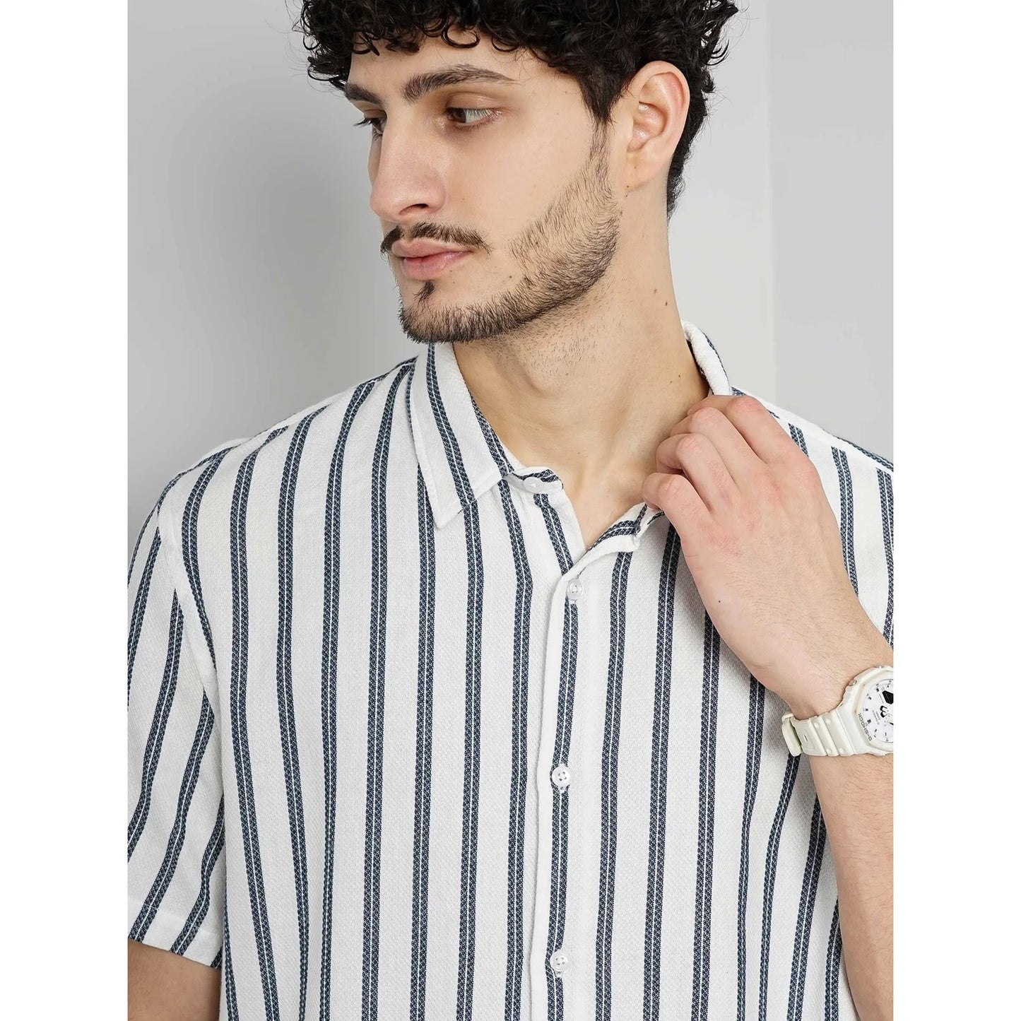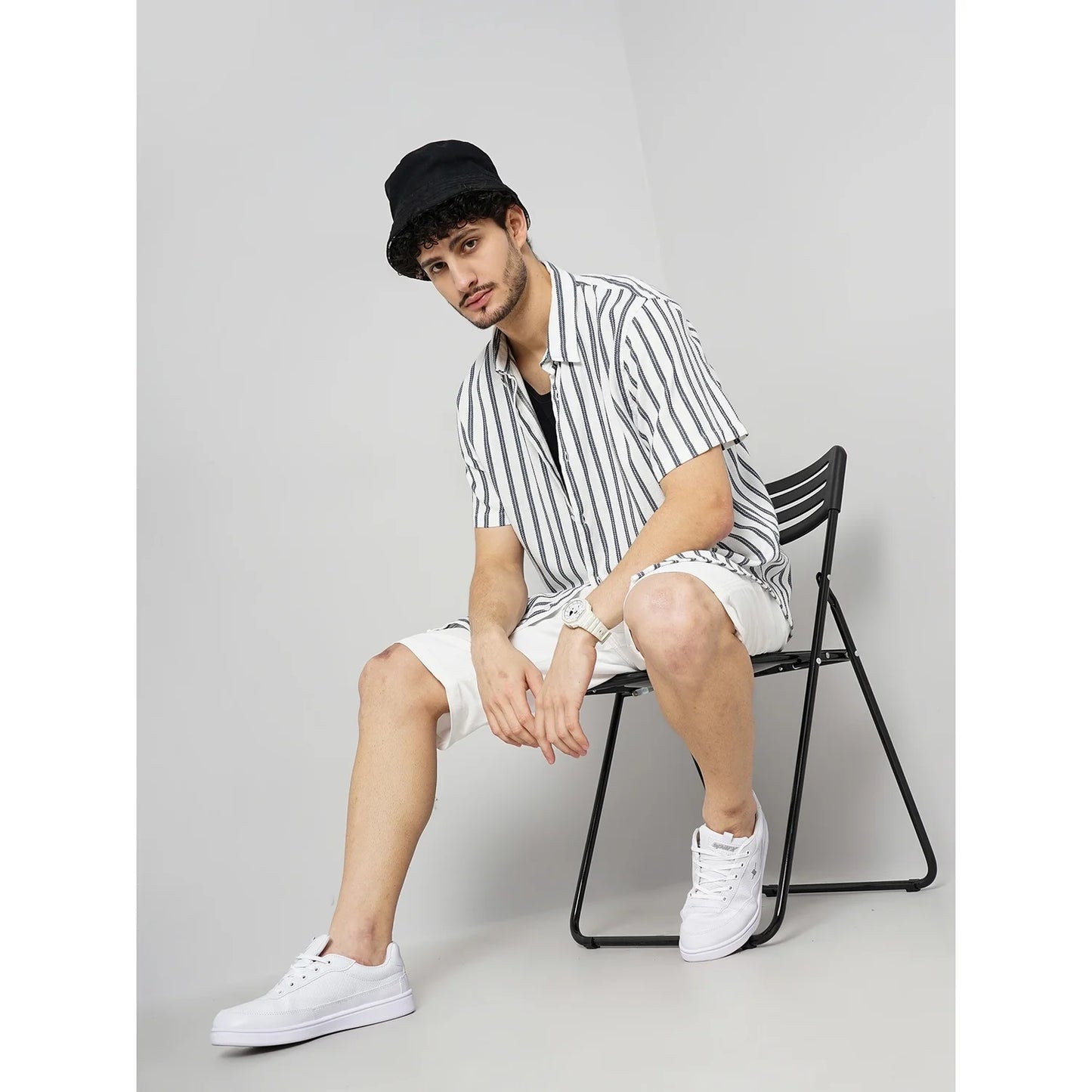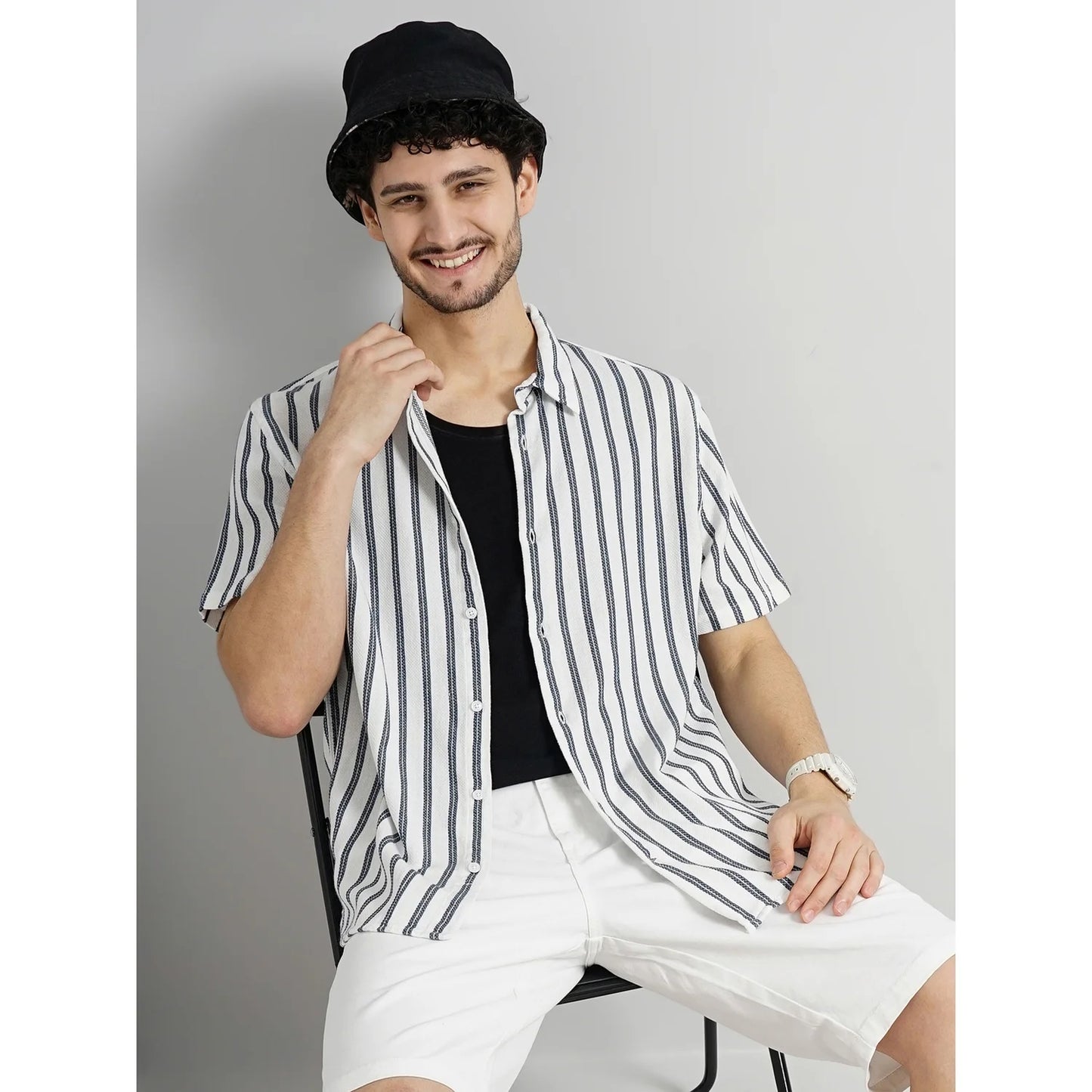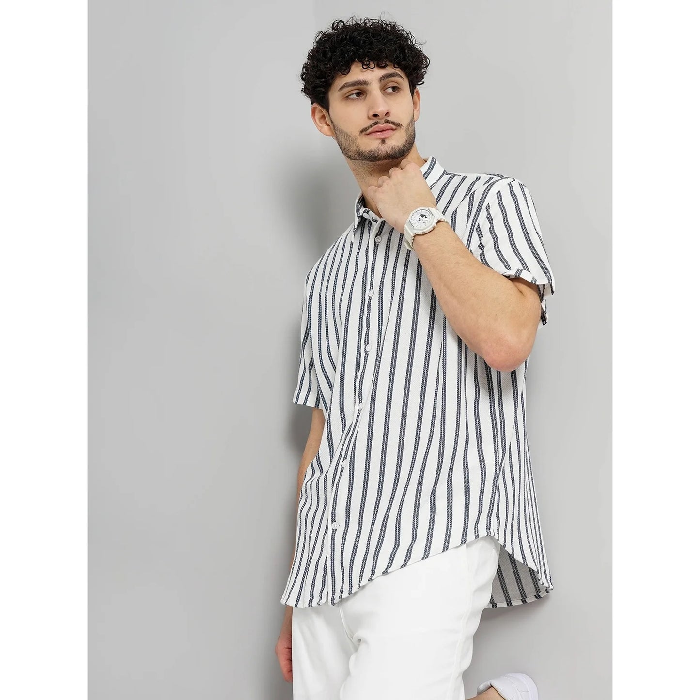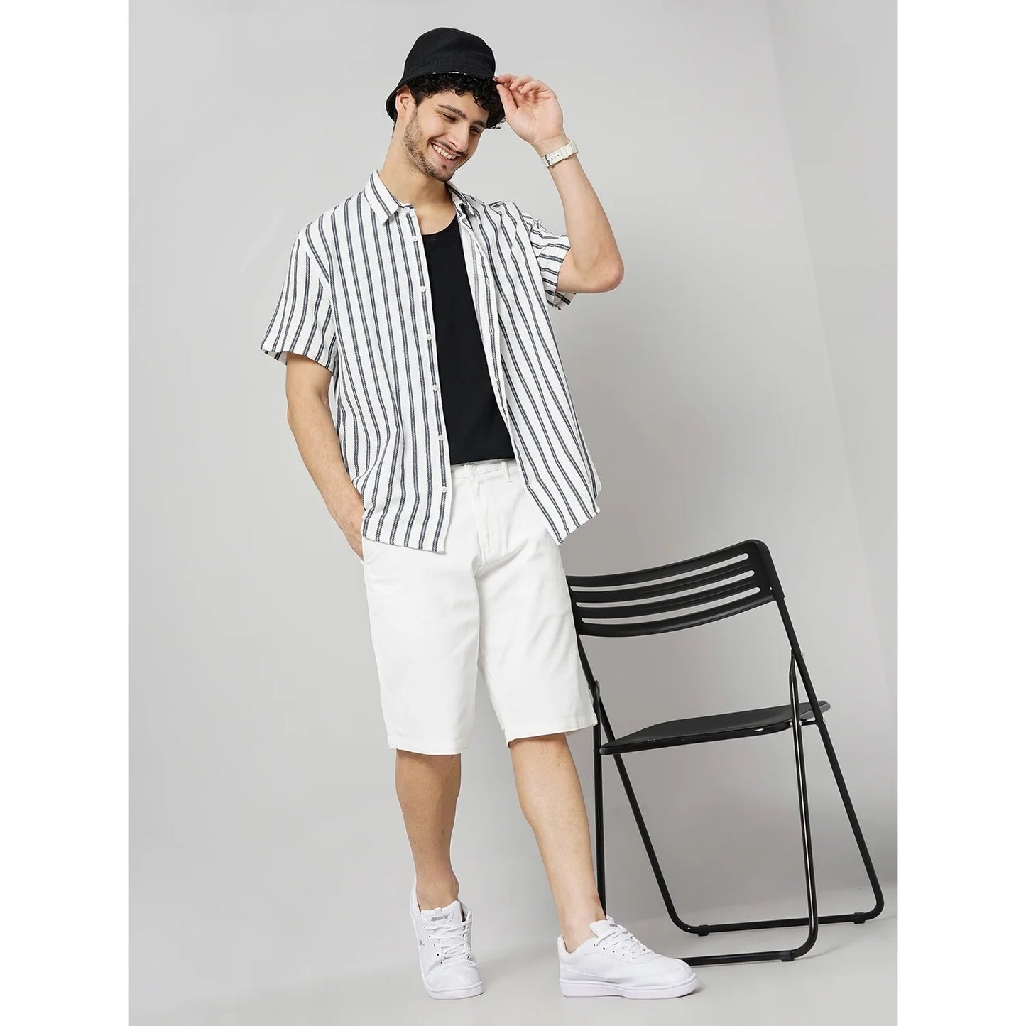 Celio's contemporary half-sleeve shirt in white is made from soft cotton, perfect for casual occasions. Ideal for men seeking comfort and style. Disclaimer: All other items in the image are only for display purposes and will not be a part of the delivery content. Product colour may slightly vary due to photographic lighting sources. Country of Origin - India.