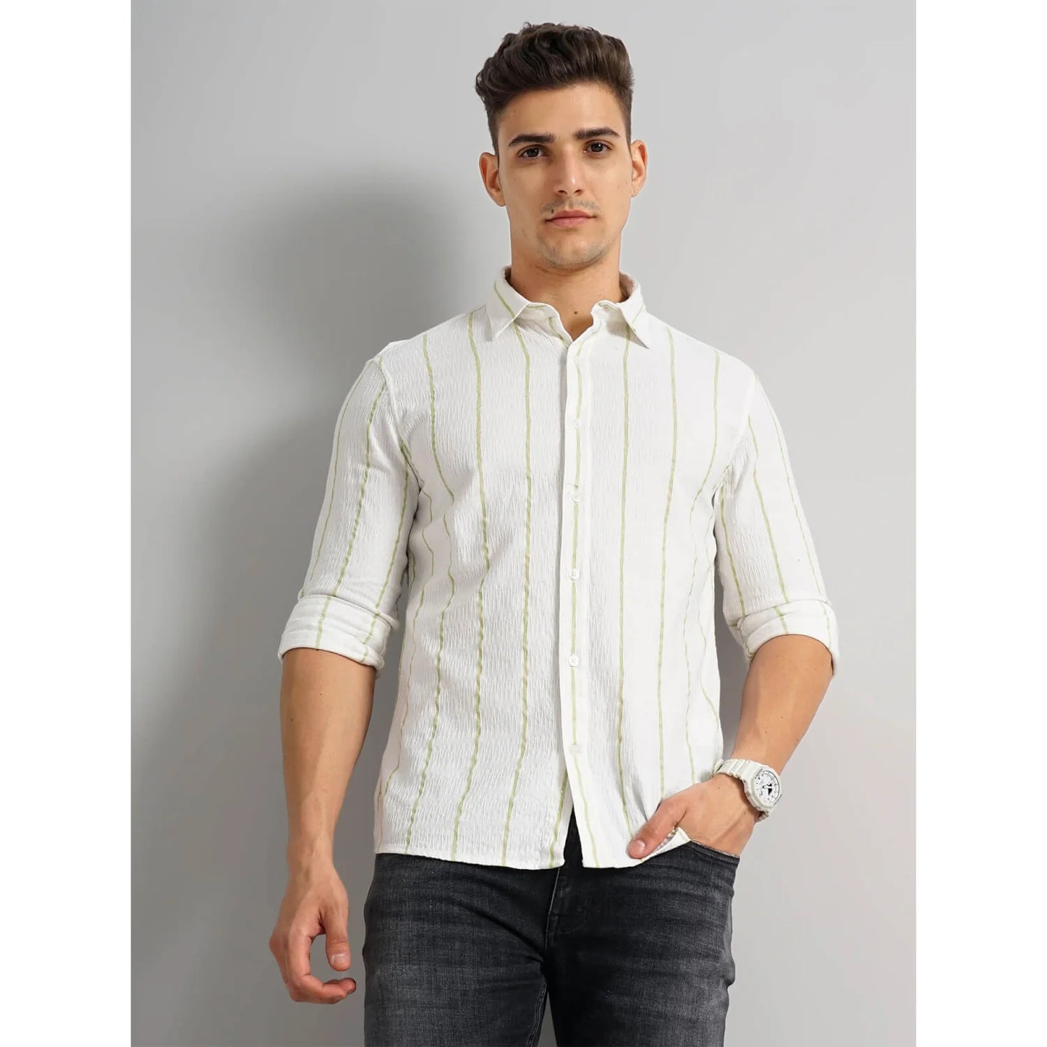Elevate your casual wardrobe with the Celio White Cotton Contemporary Shirt in Faopera Lt Olive. This White, long-sleeve shirt is crafted from soft cotton, perfect for men. Disclaimer: All other items in the image are only for display purposes and will not be a part of the delivery content. Product colour may slightly vary due to photographic lighting sources. Country of Origin - India.