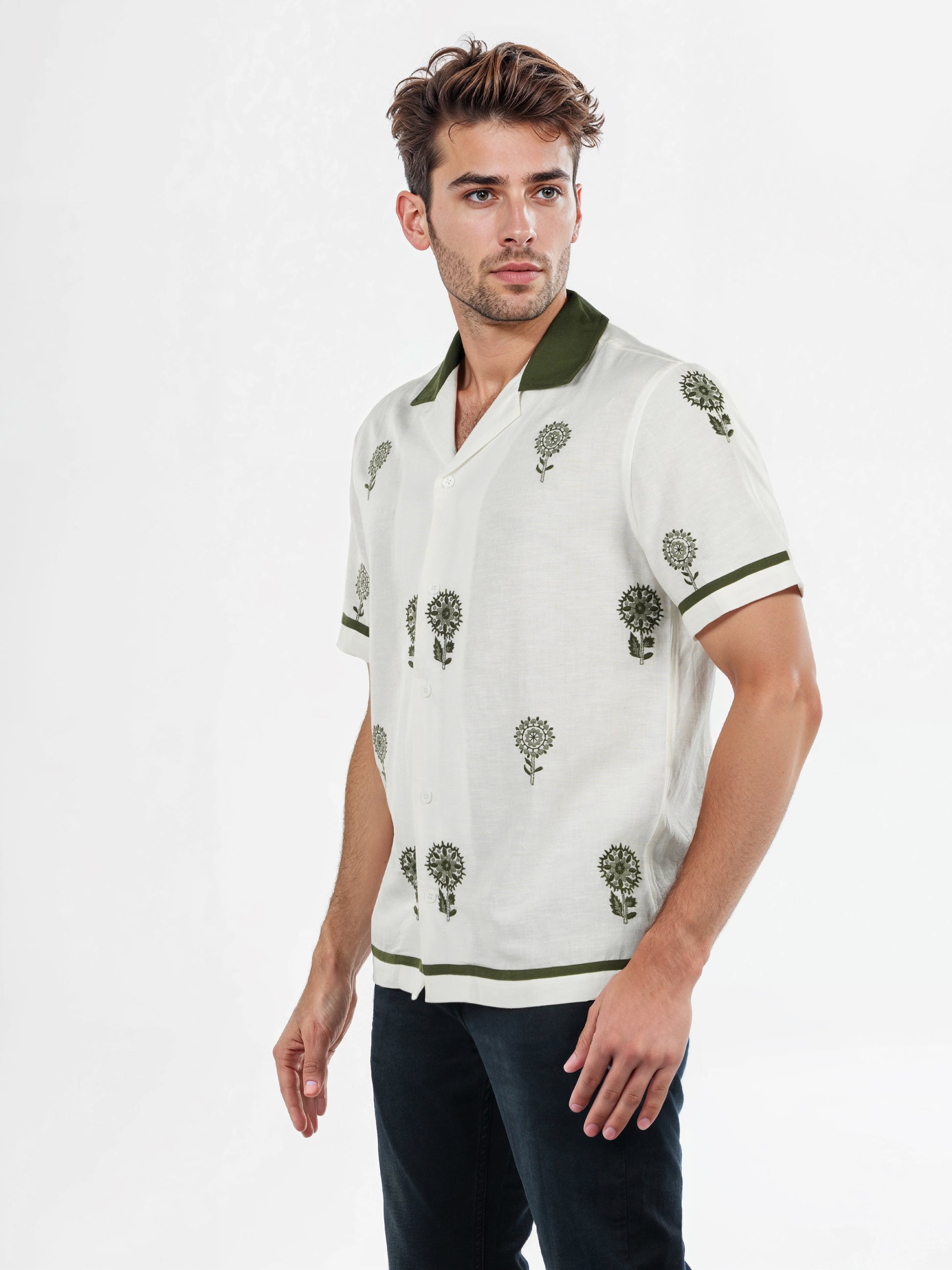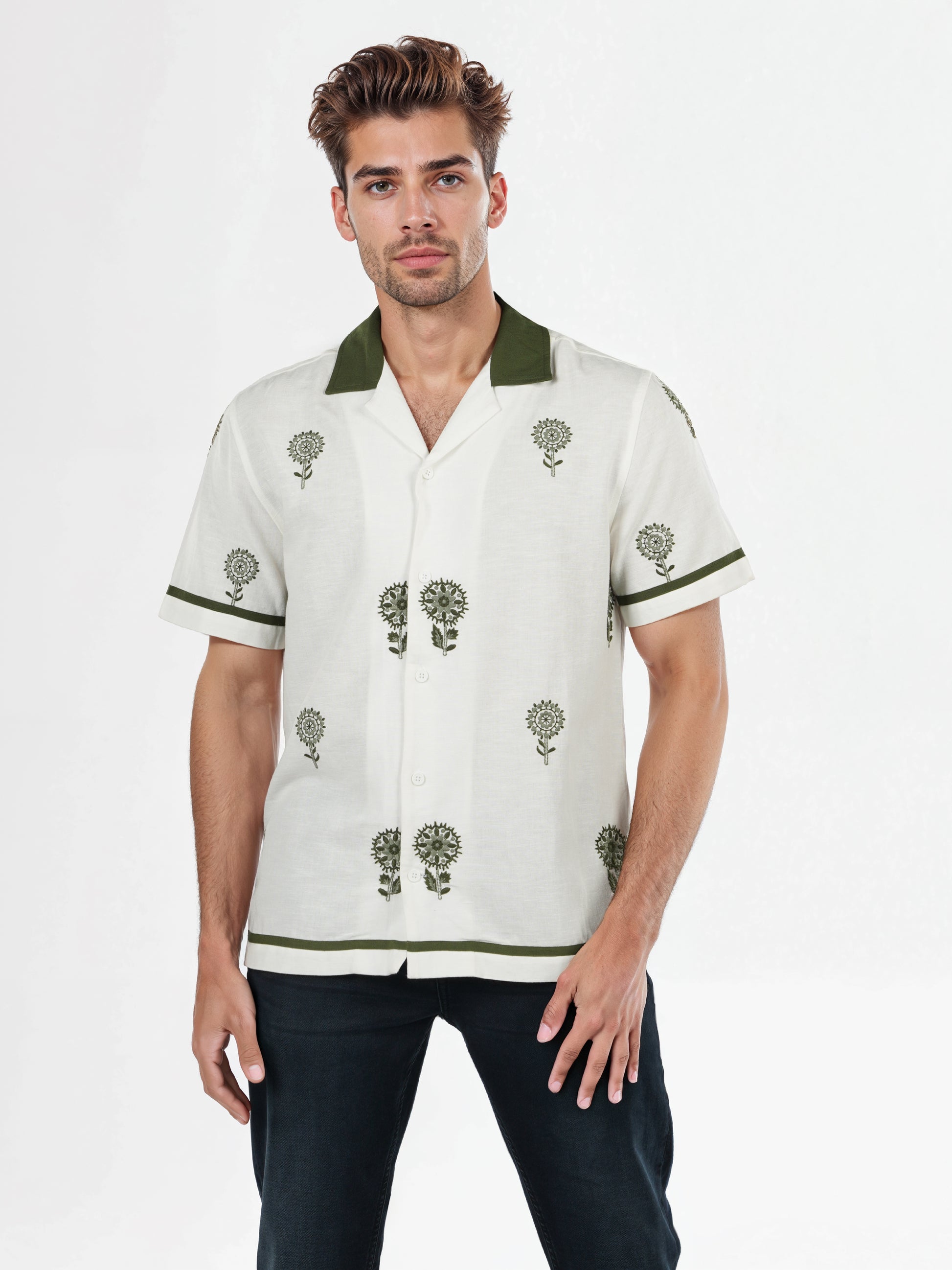 Elevate your casual wardrobe with the Celio Men White Embroidered Regular Fit Linen-Blend Shirt. Crafted from a comfortable linen-blend, it features short sleeves and a stylish design. Disclaimer: All other items in the image are only for display purposes and will not be a part of the delivery content. Product colour may slightly vary due to photographic lighting sources. Country of Origin - India.