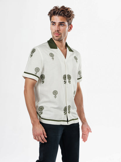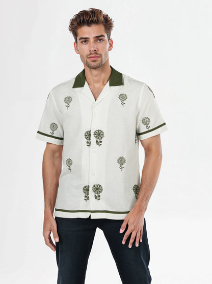 Celio* Embroidered Regular Fit Linen-Blend White Shirts