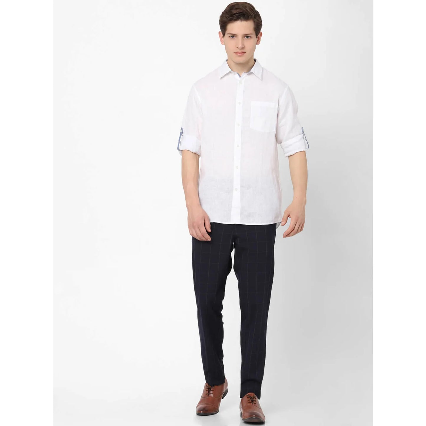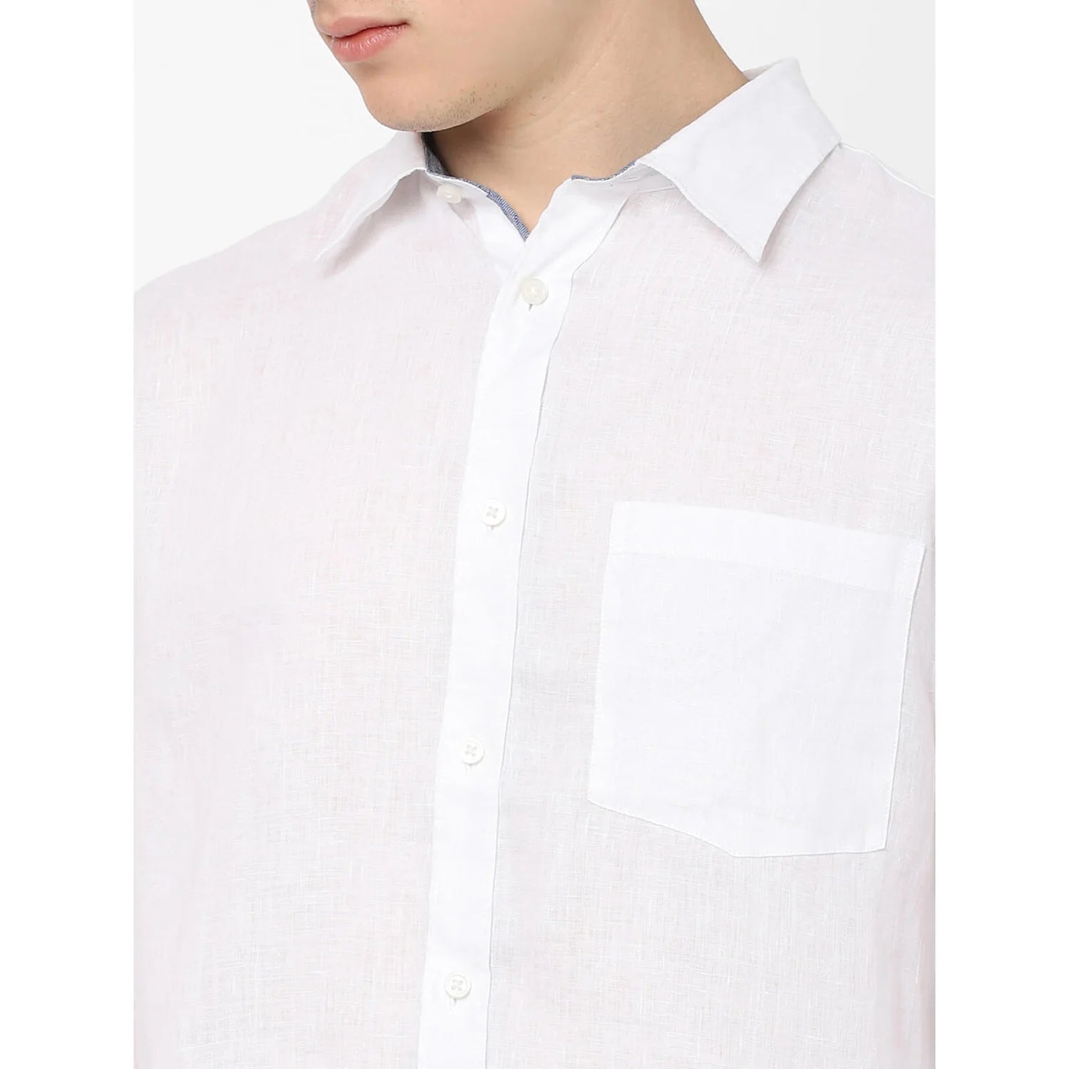 Celio* Solid Regular Fit Linen White Formal Shirt