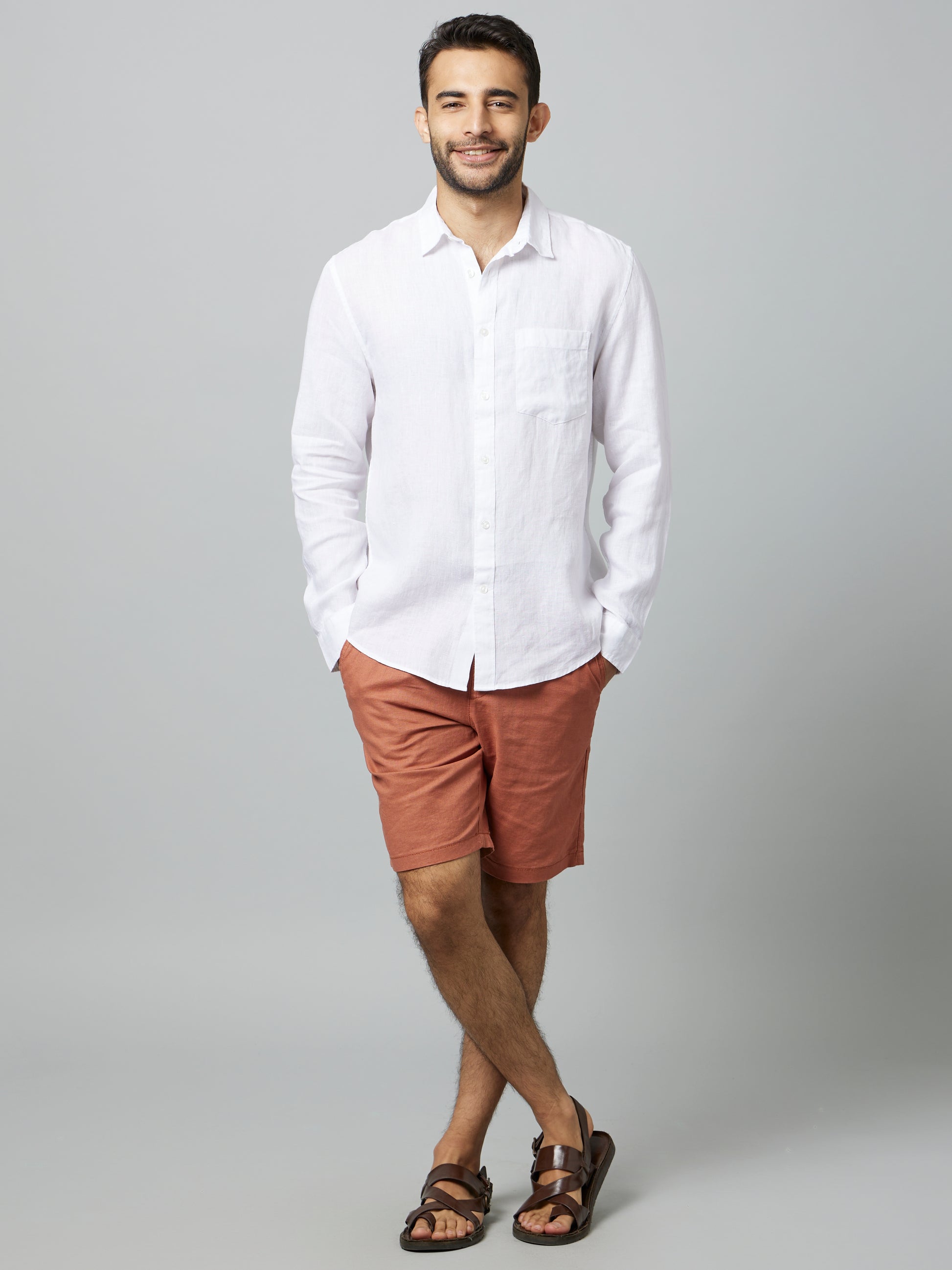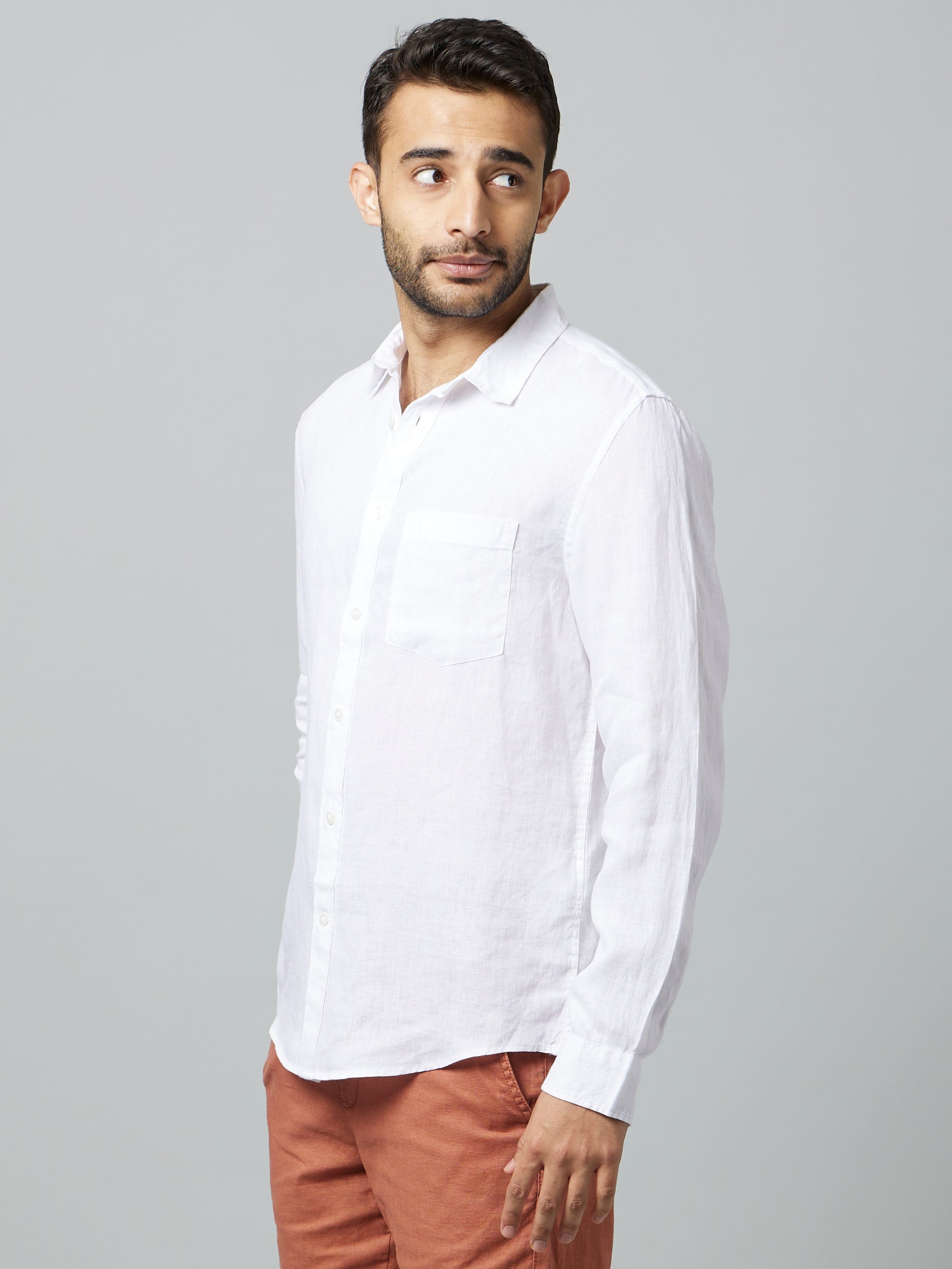 Elevate your casual wardrobe with this Celio men's white linen shirt. Featuring a spread collar and long sleeves, it offers a regular fit, perfect for relaxed outings. Disclaimer: All other items in the image are only for display purposes and will not be a part of the delivery content. Product colour may slightly vary due to photographic lighting sources. Country of Origin - India.