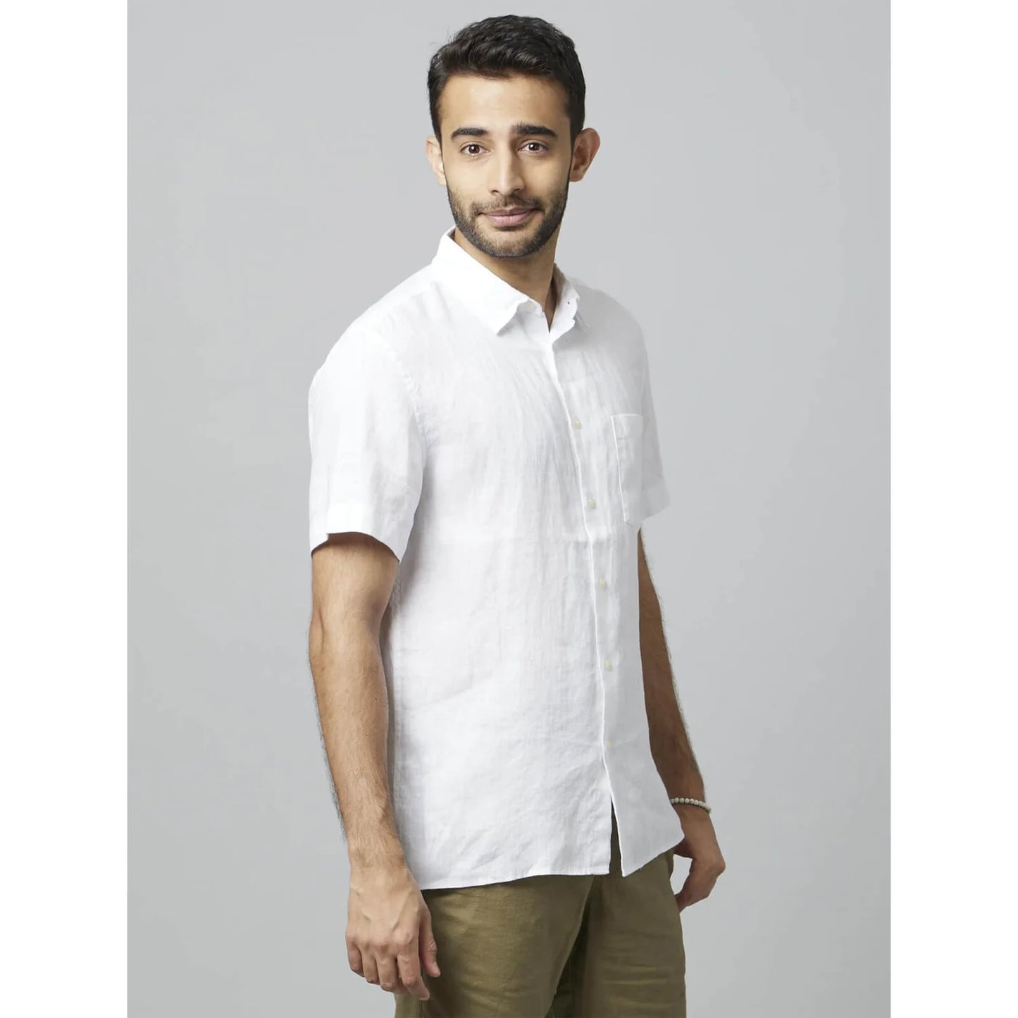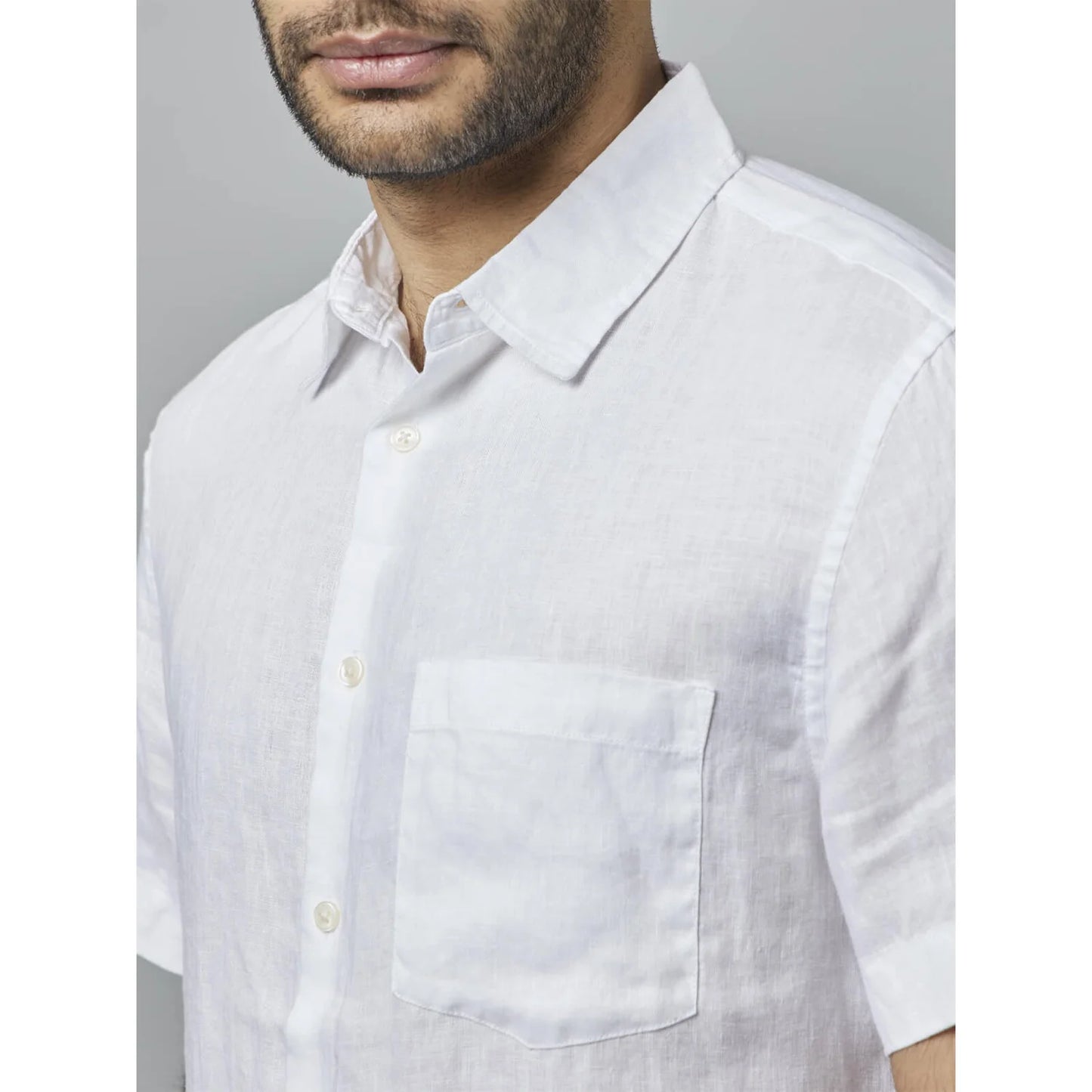 Enhance your casual style with the Celio Men Linen Solid White Short Sleeves Shirt. Crafted from breathable linen, it features half sleeves, making it perfect for warm weather. Disclaimer: All other items in the image are only for display purposes and will not be a part of the delivery content. Product colour may slightly vary due to photographic lighting sources. Country of Origin - India.