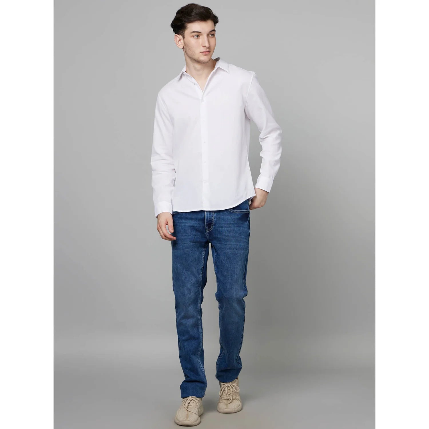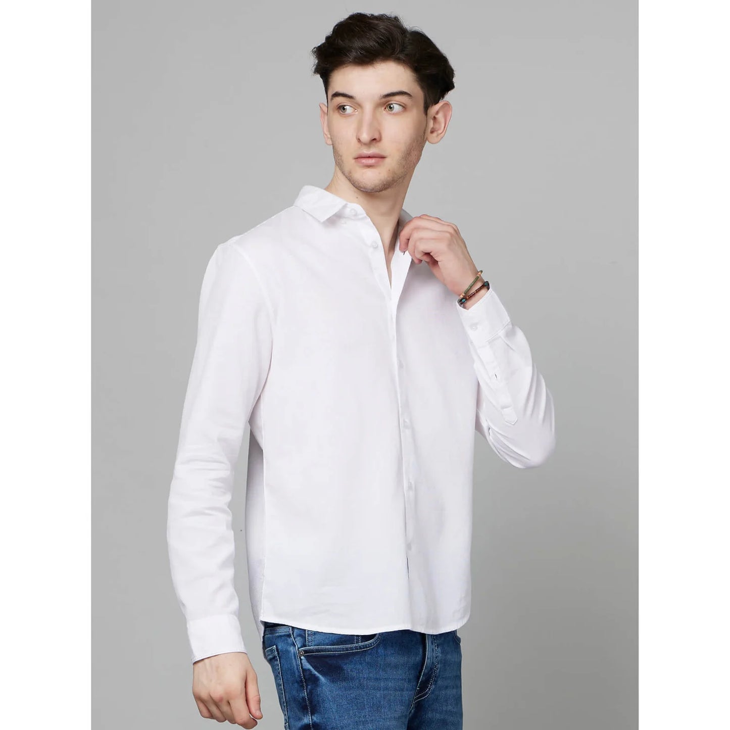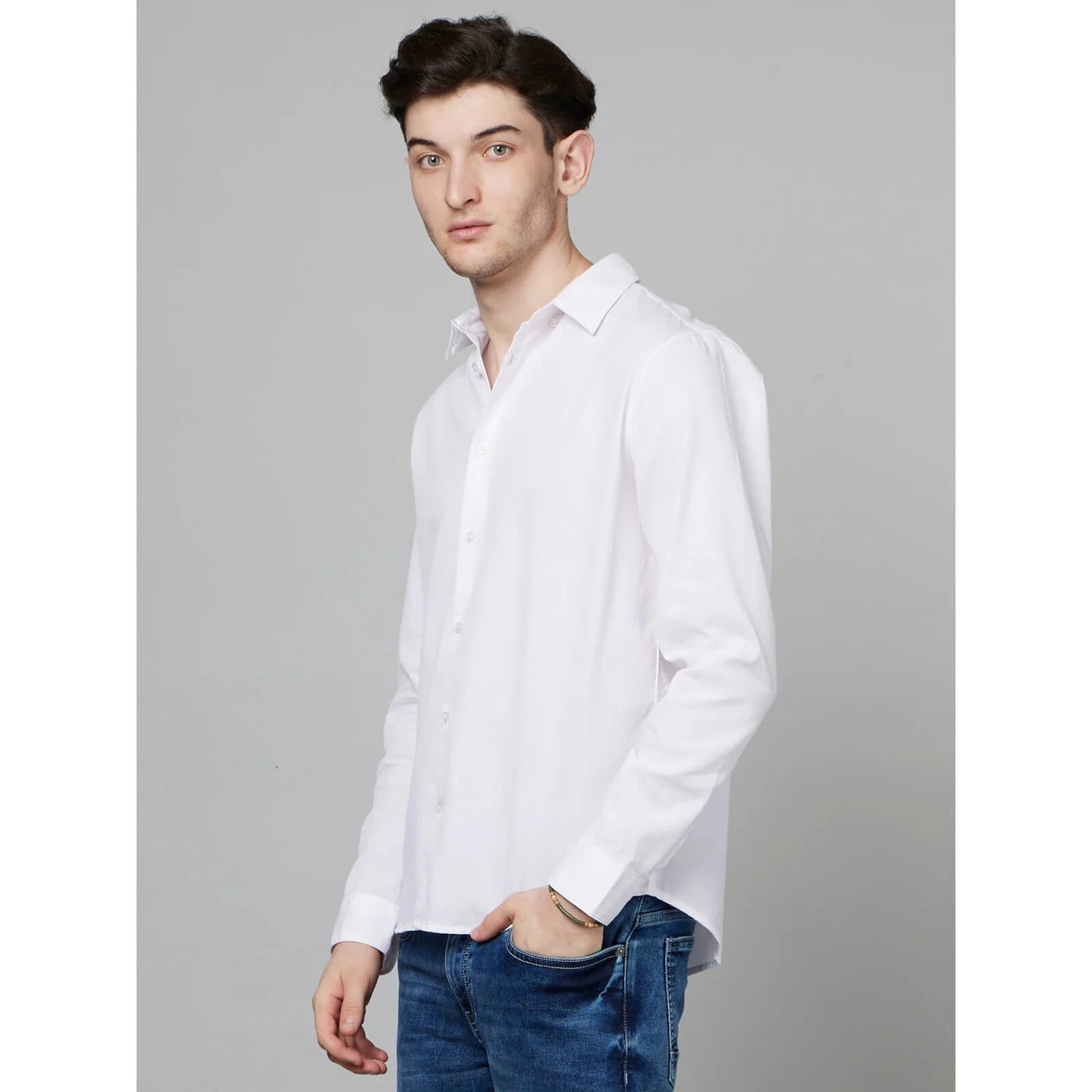 Celio* Solid Regular Fit Poly-Blend White Formal Shirt