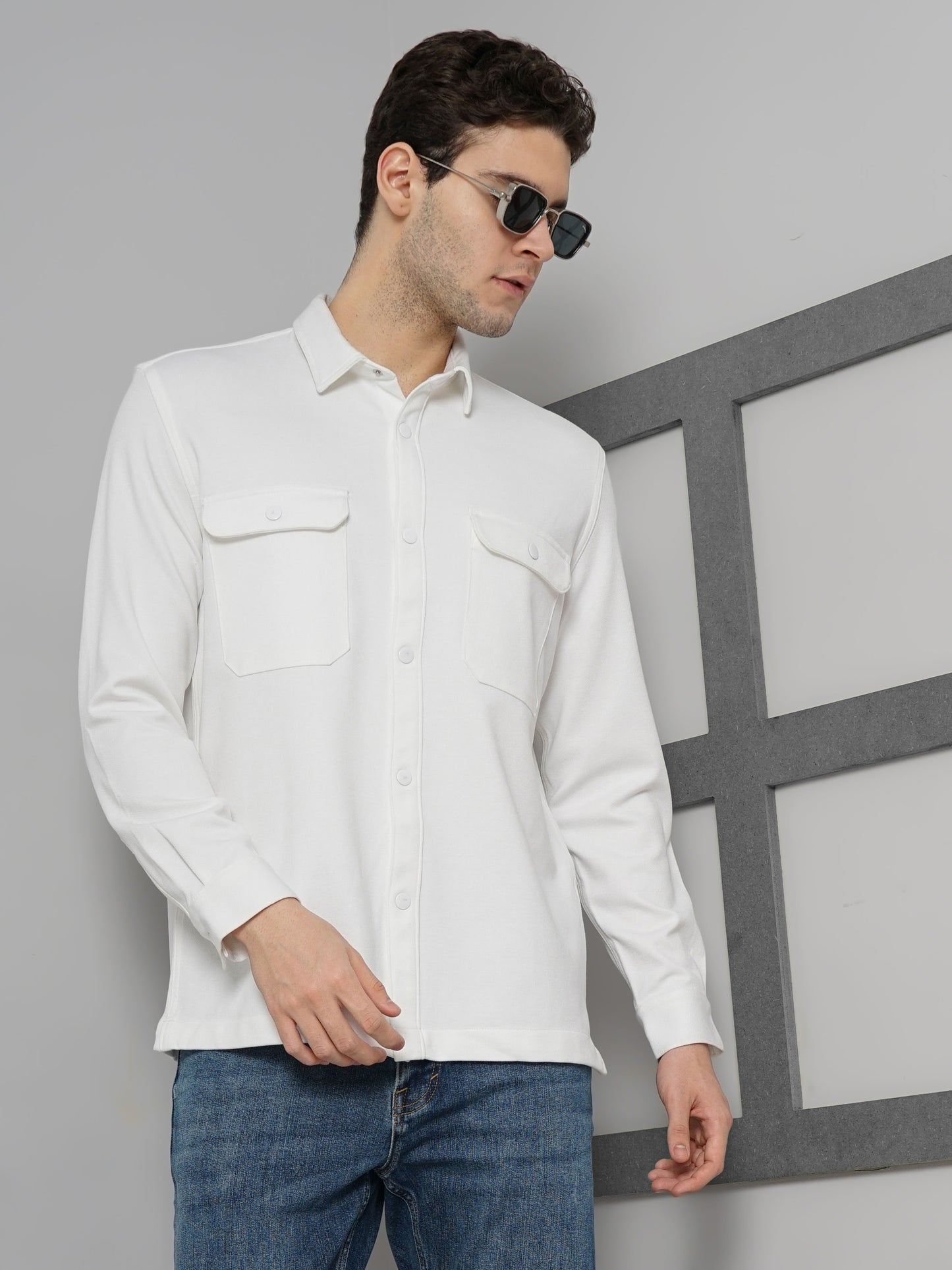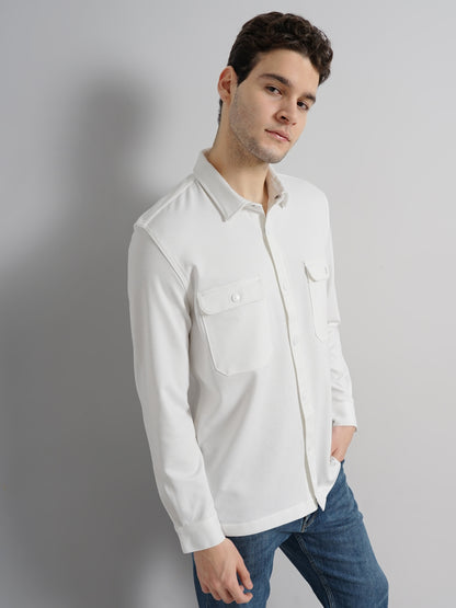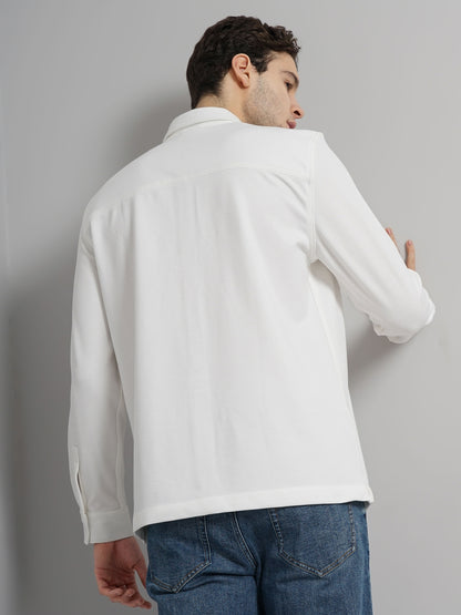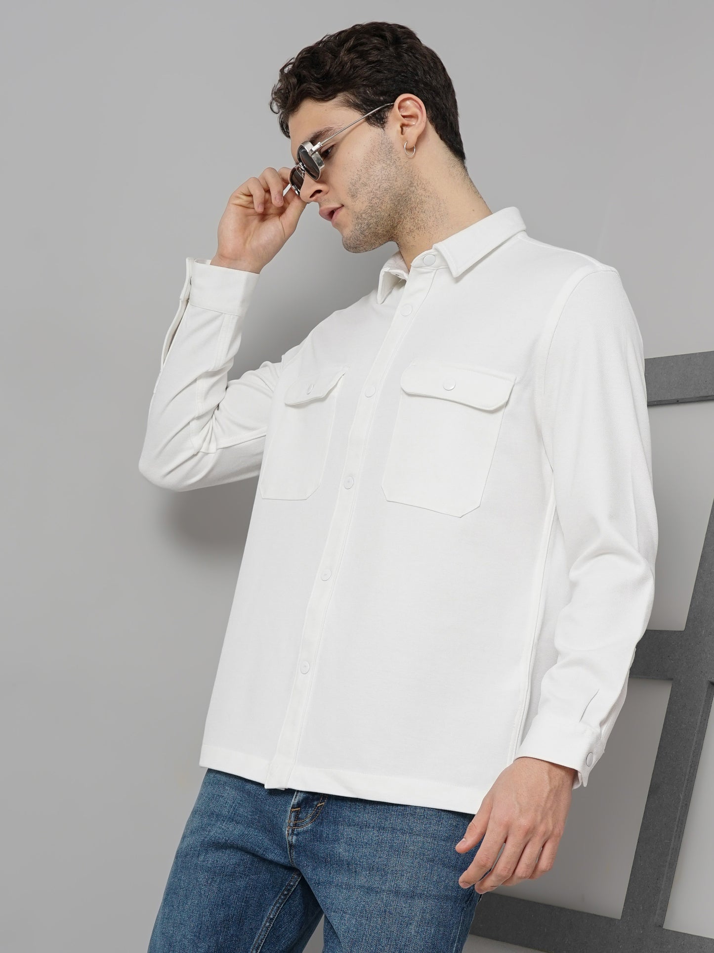 This Celio men's oversized casual overshirt in white is crafted from polyester. It features long sleeves, perfect for a relaxed look on casual occasions. Disclaimer: All other items in the image are only for display purposes and will not be a part of the delivery content. Product colour may slightly vary due to photographic lighting sources. Country of Origin - India.