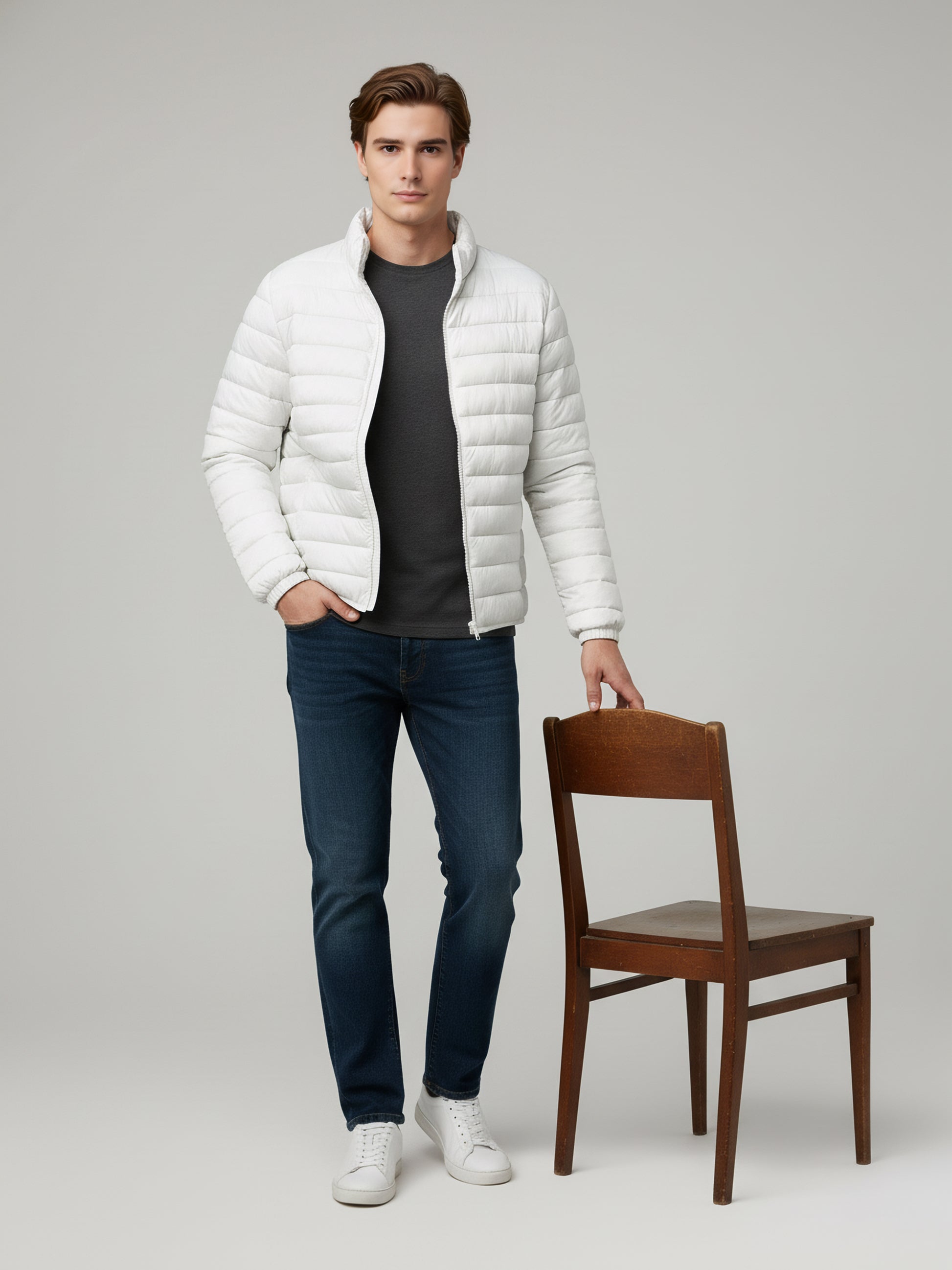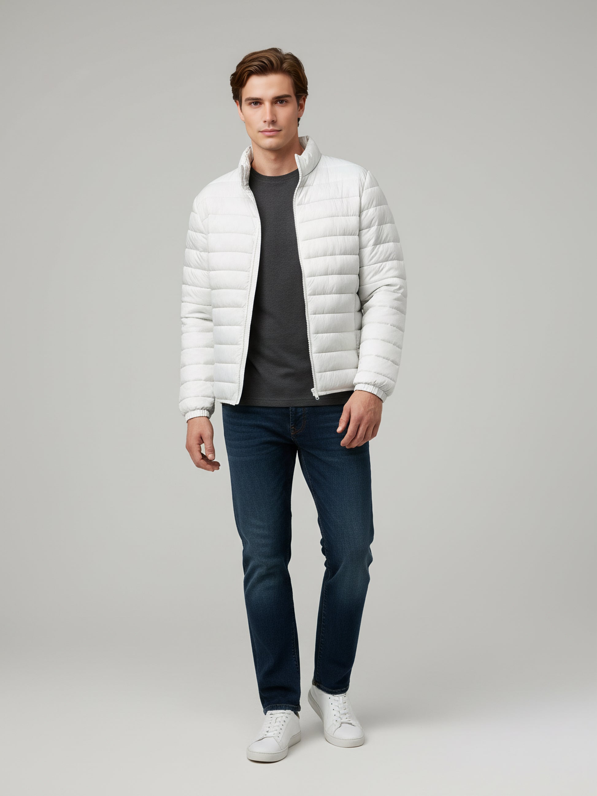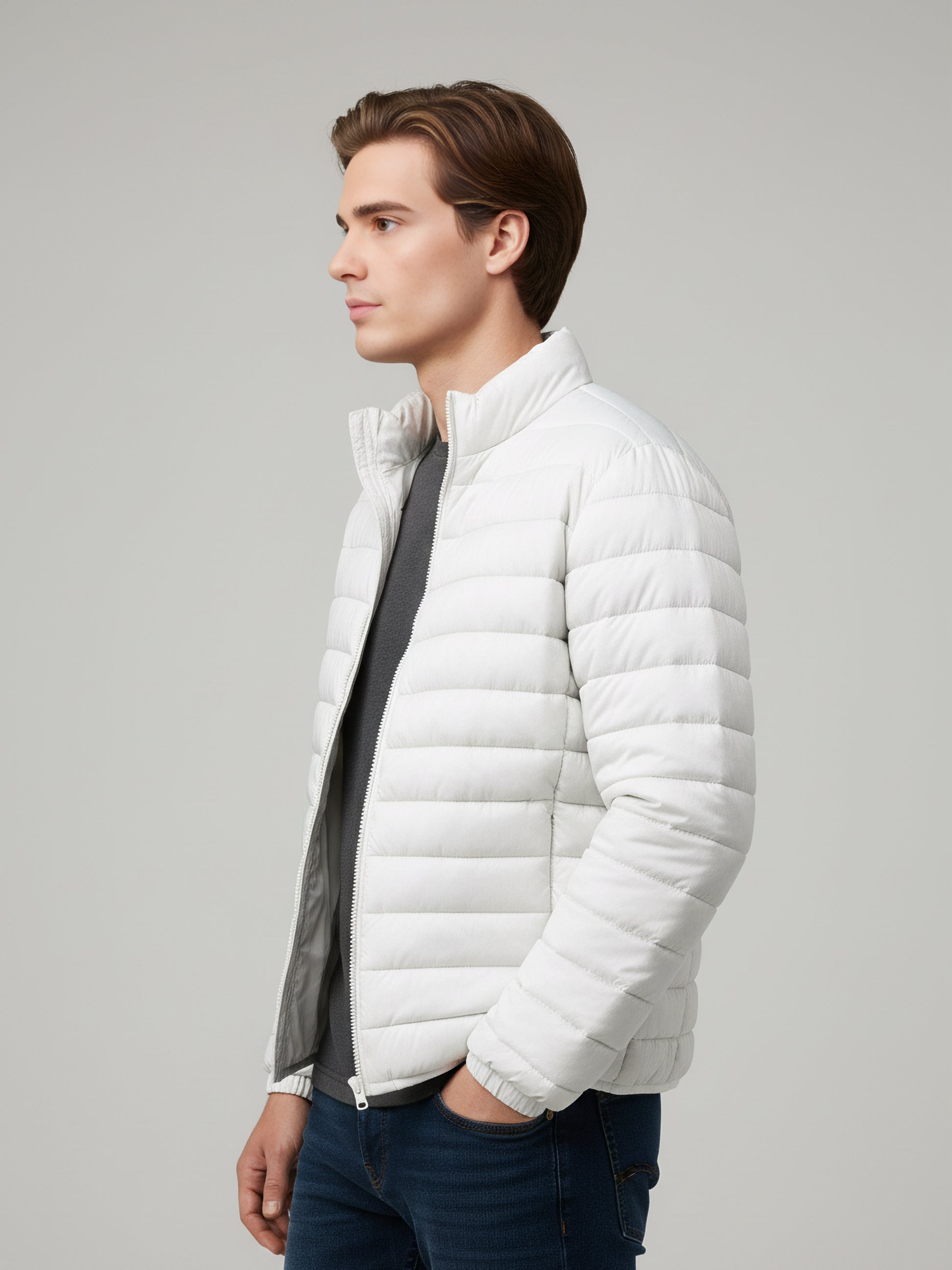 Explore style with the Celio Men White Solid Jacket, crafted from polyester for casual wear. Featuring long sleeves, this regular fit jacket combines comfort and a modern look. Disclaimer: All other items in the image are only for display purposes and will not be a part of the delivery content. Product colour may slightly vary due to photographic lighting sources. Country of Origin - India.