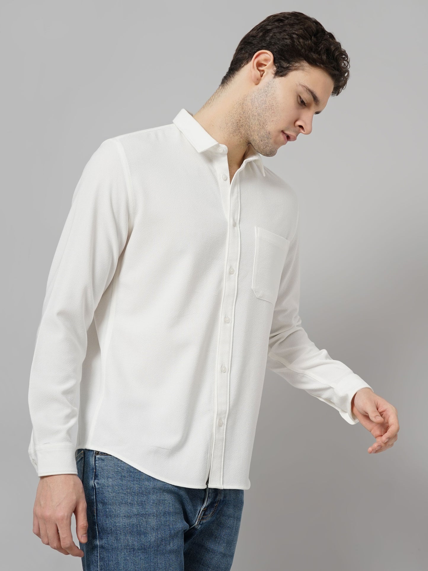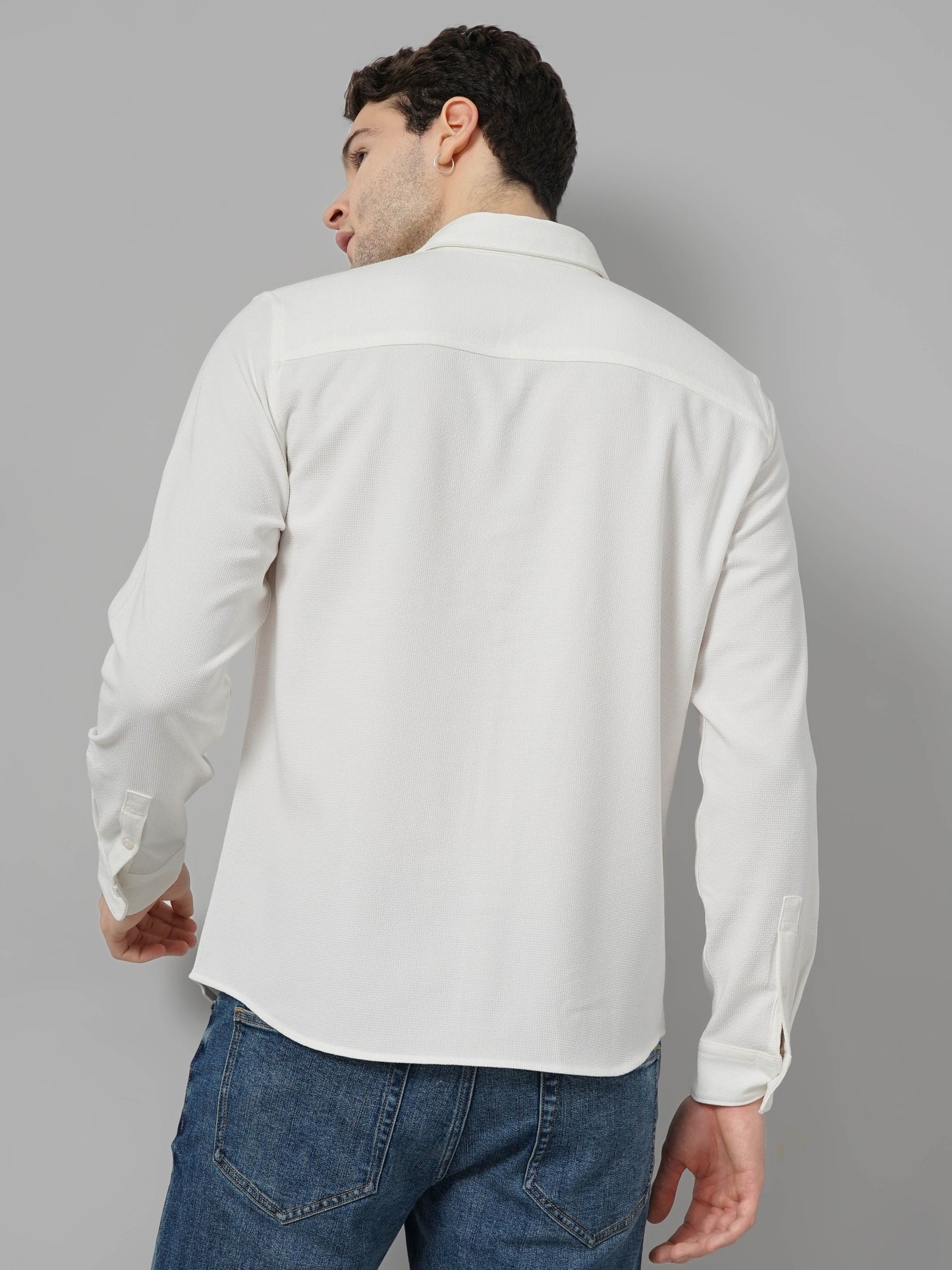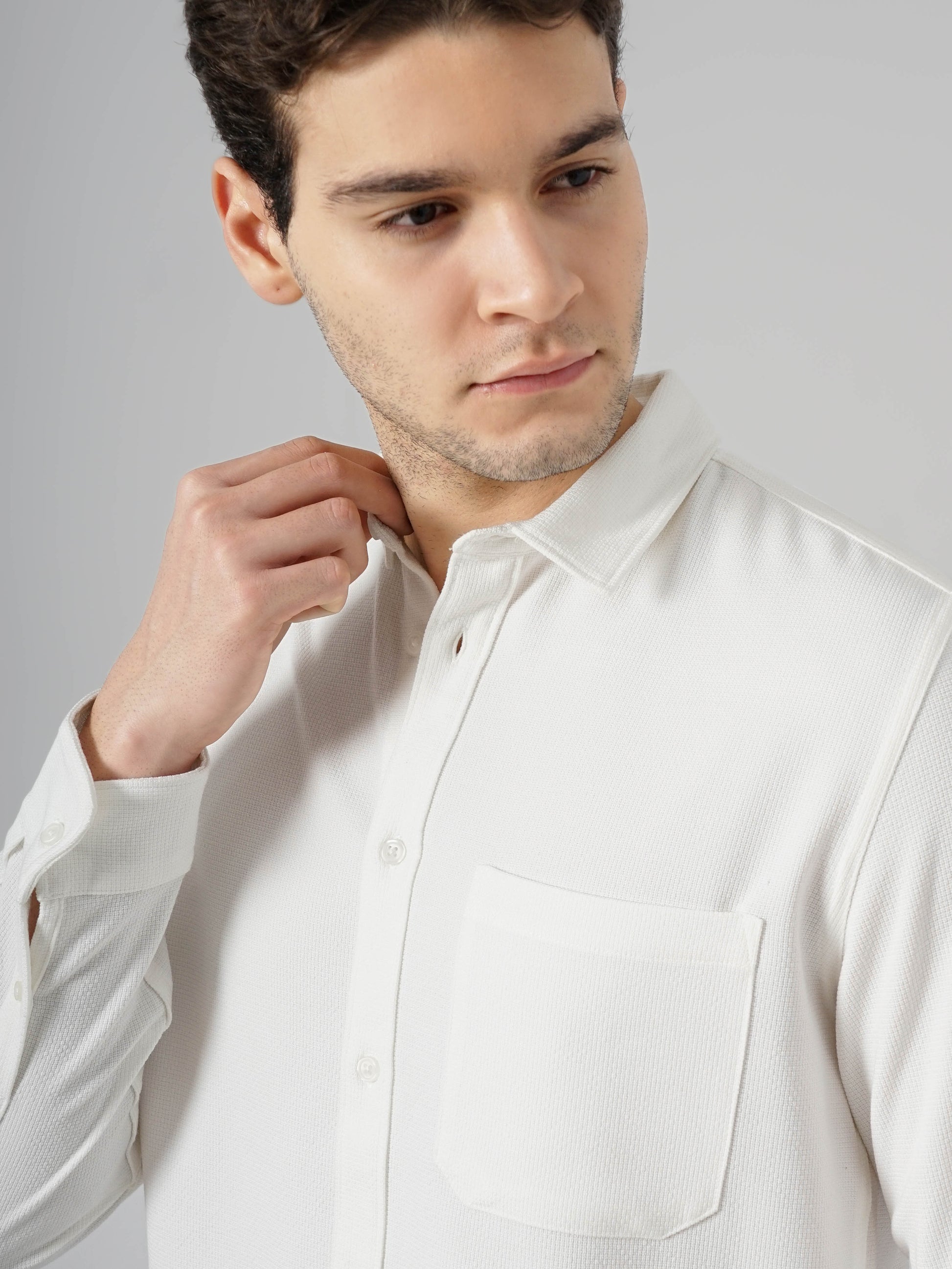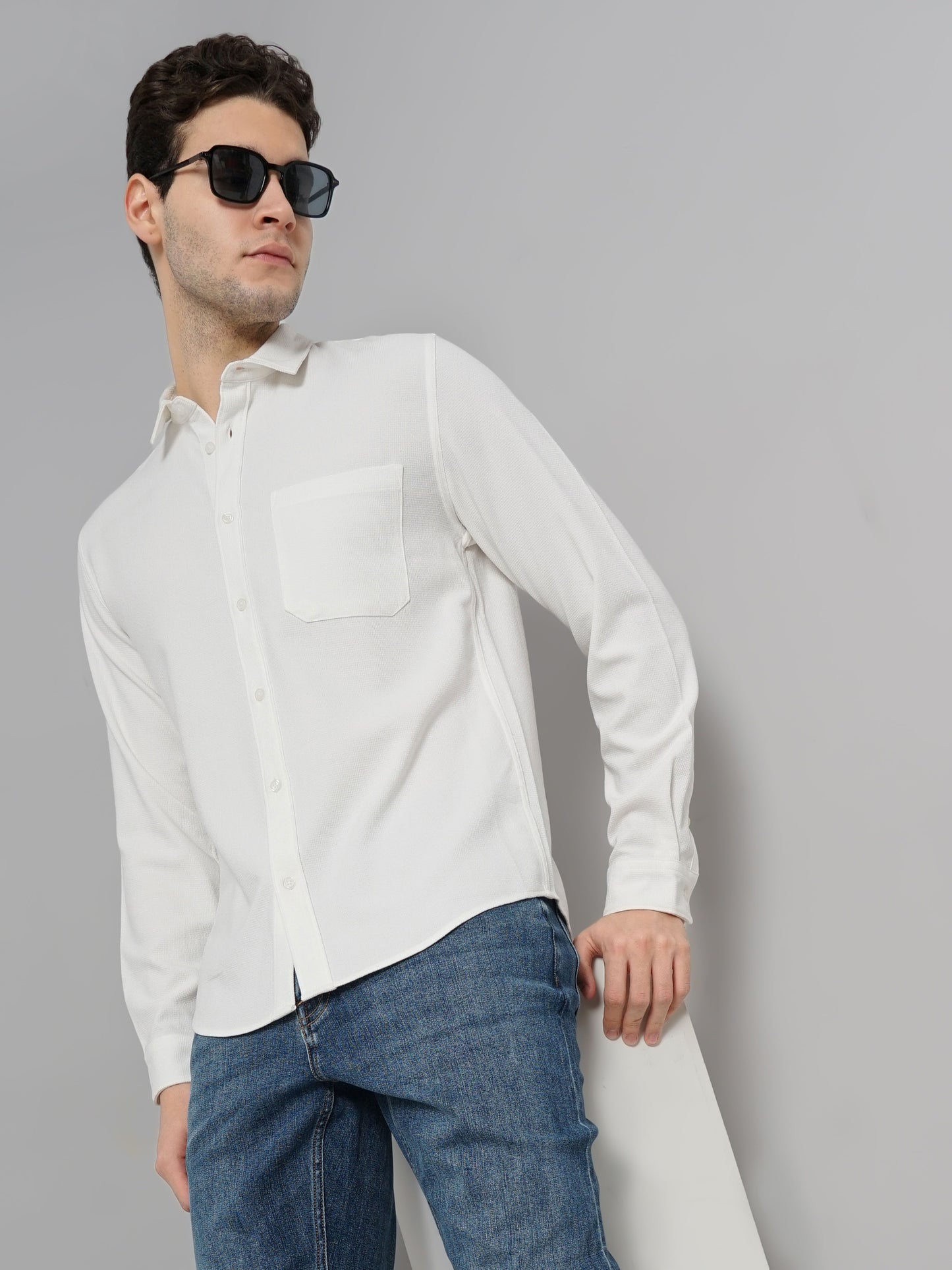 Elevate your casual wardrobe with this white regular fit overshirt from Celio. Crafted from polyester, it features long sleeves, perfect for a stylish weekend look. Disclaimer: All other items in the image are only for display purposes and will not be a part of the delivery content. Product colour may slightly vary due to photographic lighting sources. Country of Origin - India.
