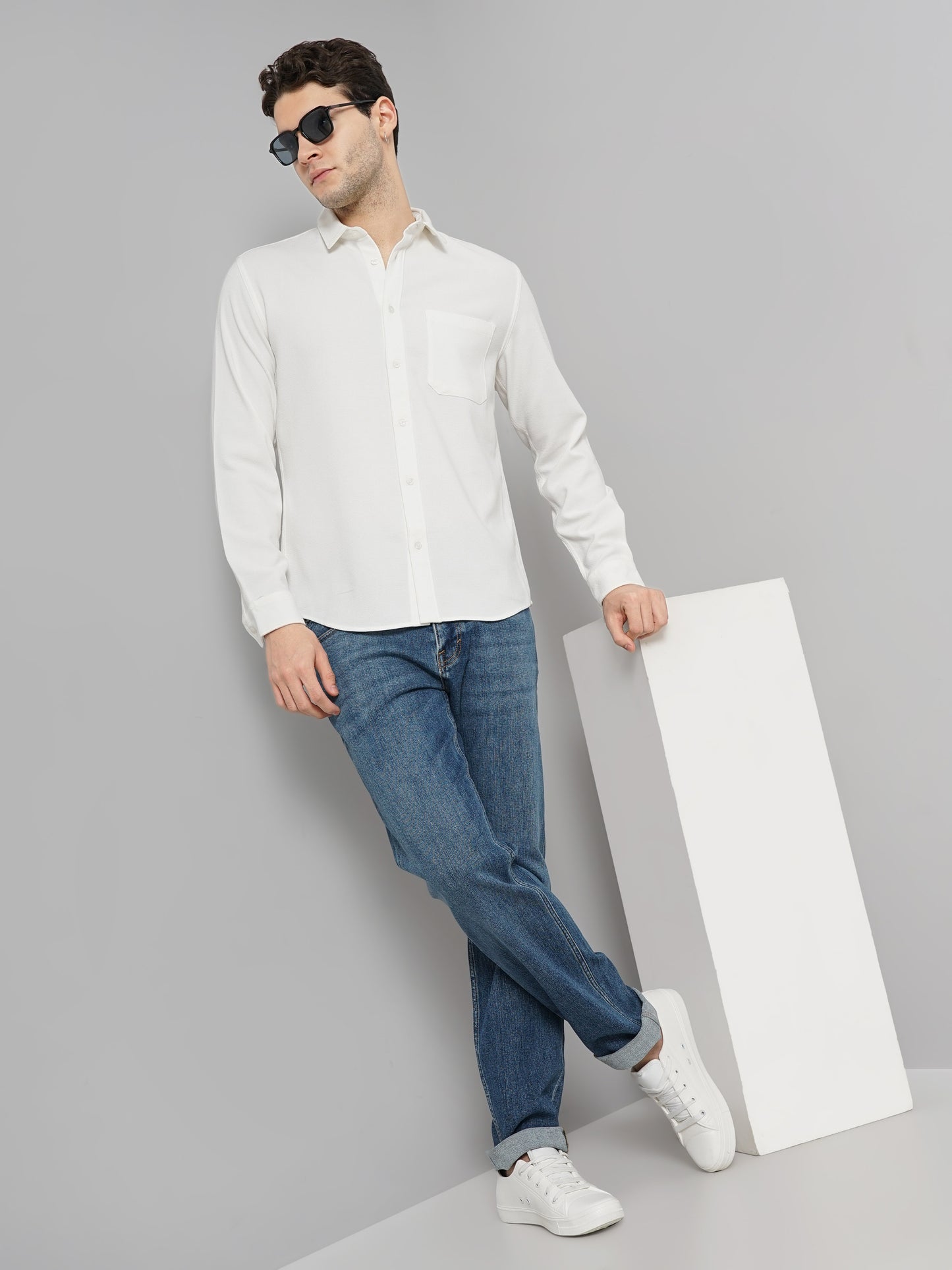Celio* Solid Regular Fit Polyester White Shirt