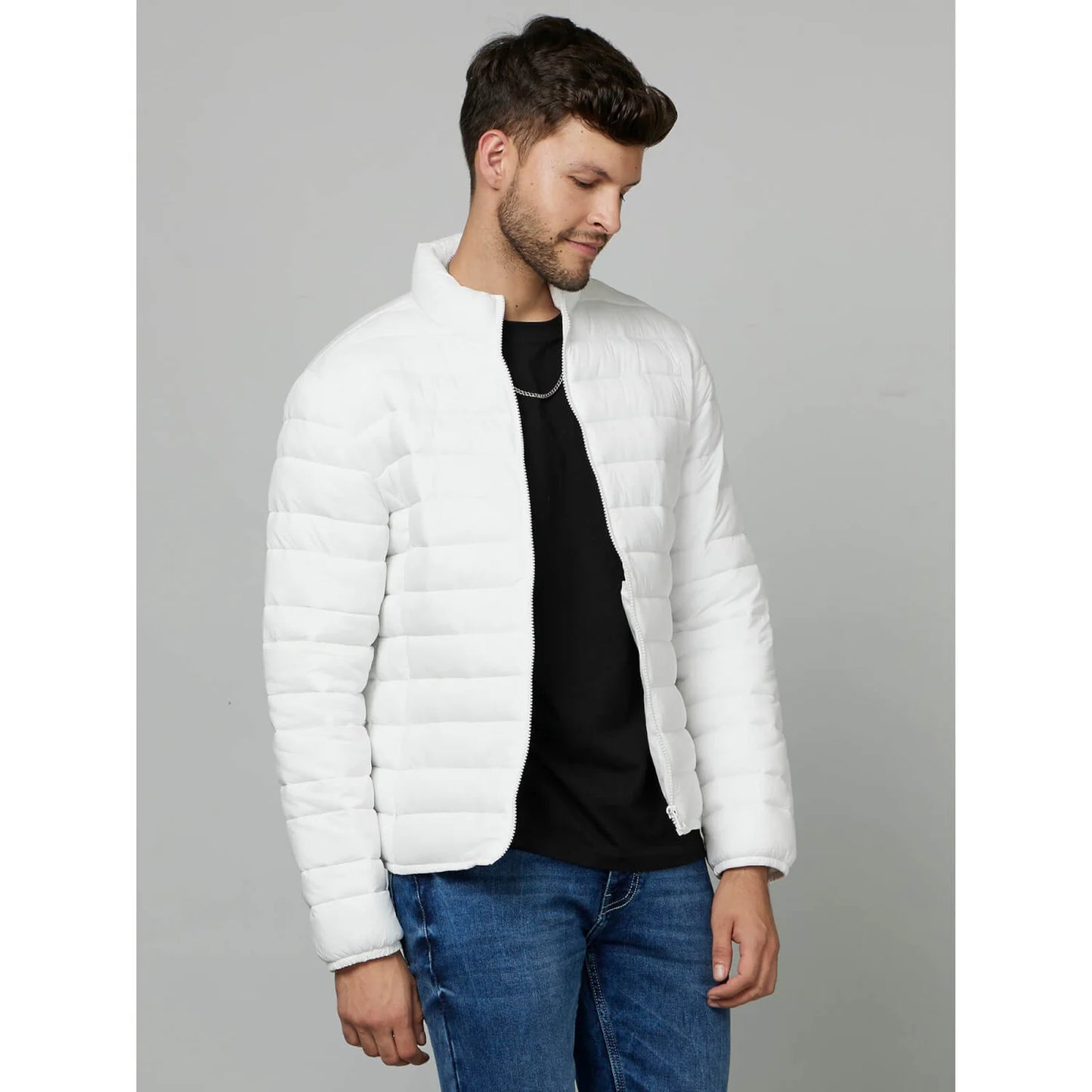Elevate your casual wardrobe with the Celio Solid White Full Sleeve Bomber Jacket. Crafted from durable polymer, this stylish men's jacket is perfect for any occasion. Disclaimer: All other items in the image are only for display purposes and will not be a part of the delivery content. Product colour may slightly vary due to photographic lighting sources. Country of Origin - India.