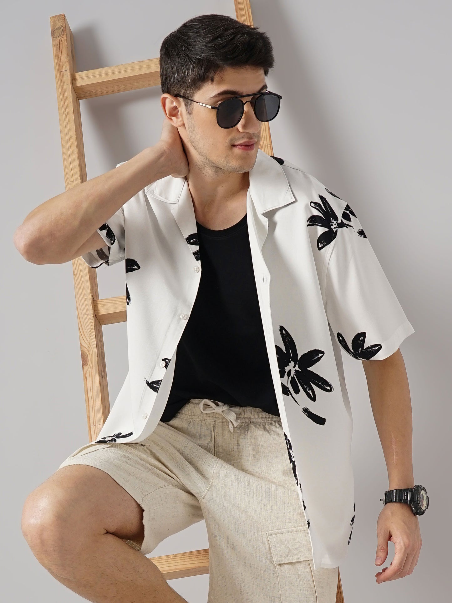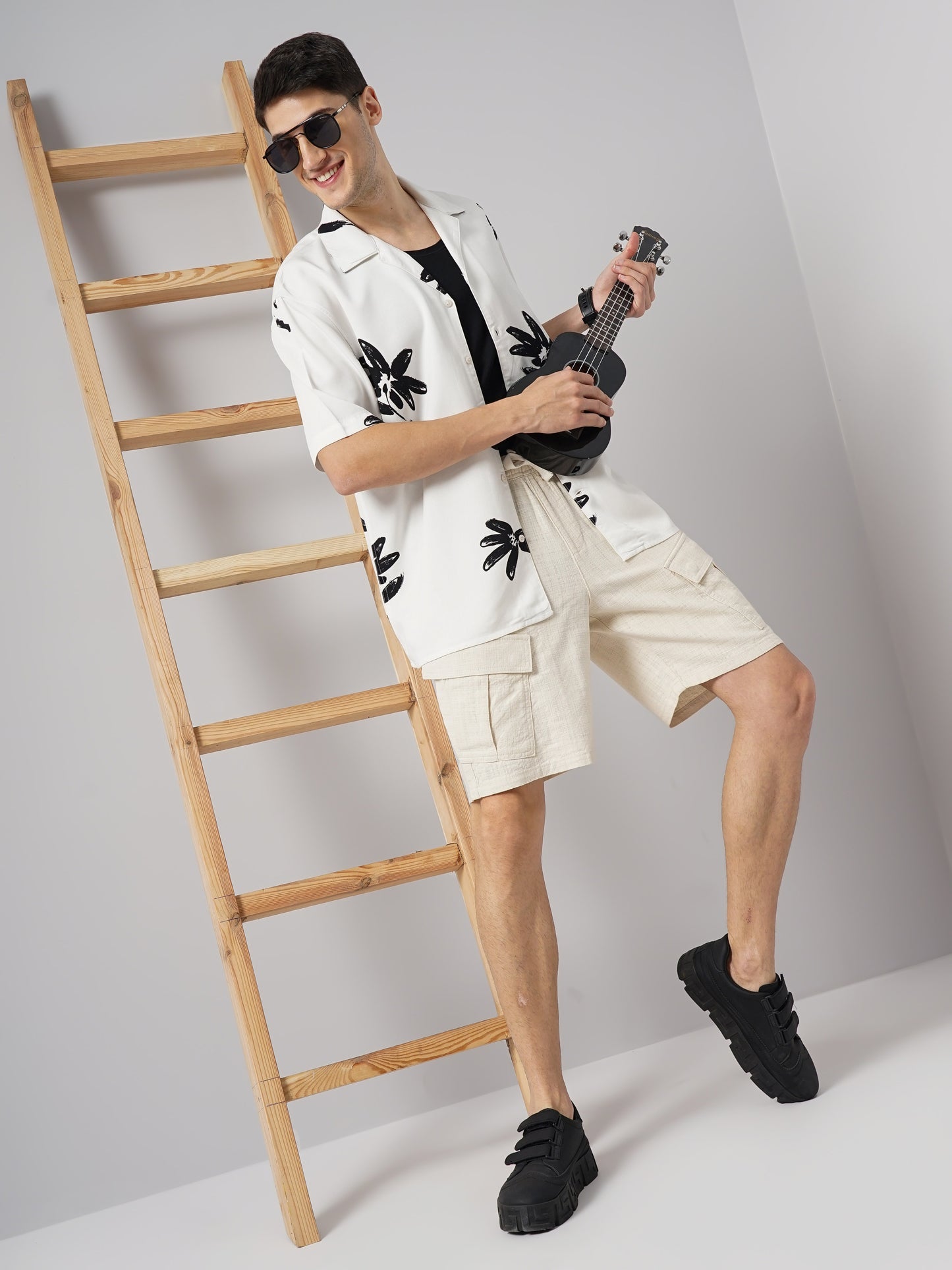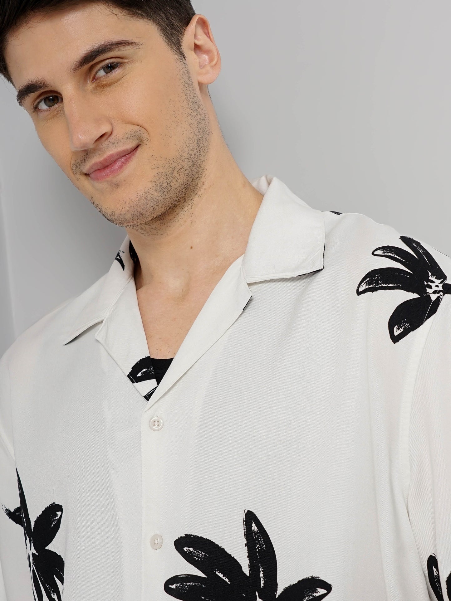 Shop the Celio Men's Printed Casual Shirt in white. Crafted from soft touch viscose rayon, this regular fit shirt features short sleeves for ultimate comfort and style. Disclaimer: All other items in the image are only for display purposes and will not be a part of the delivery content. Product colour may slightly vary due to photographic lighting sources. Country of Origin - India.