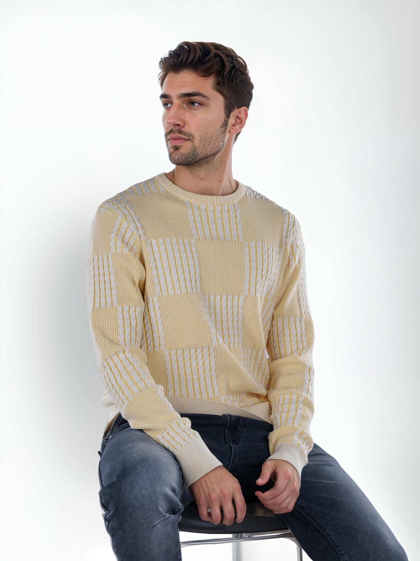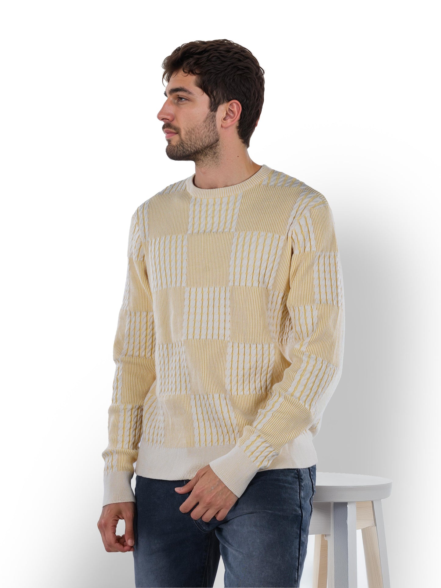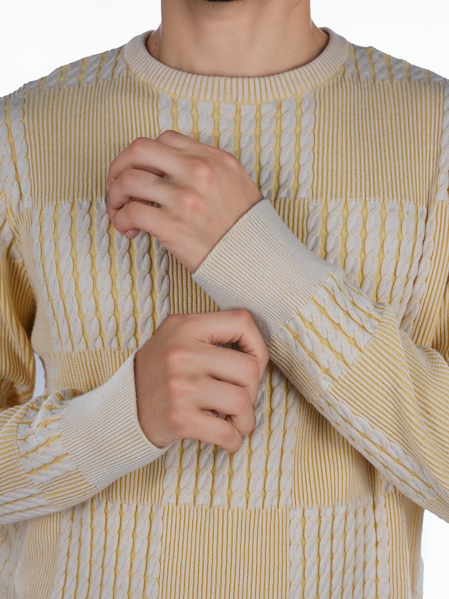 Elevate your casual look with the Celio Men’s Yellow Round Neck Colourblocked Sweater. Crafted from comfortable cotton, it features long sleeves for a stylish touch. Disclaimer: All other items in the image are only for display purposes and will not be a part of the delivery content. Product colour may slightly vary due to photographic lighting sources. Country of Origin - India.