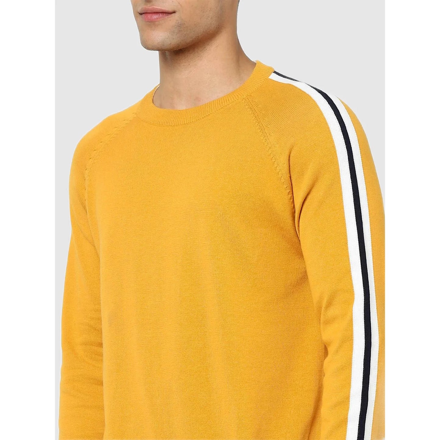 Celio* Solid Regular Fit Cotton Yellow Sweater