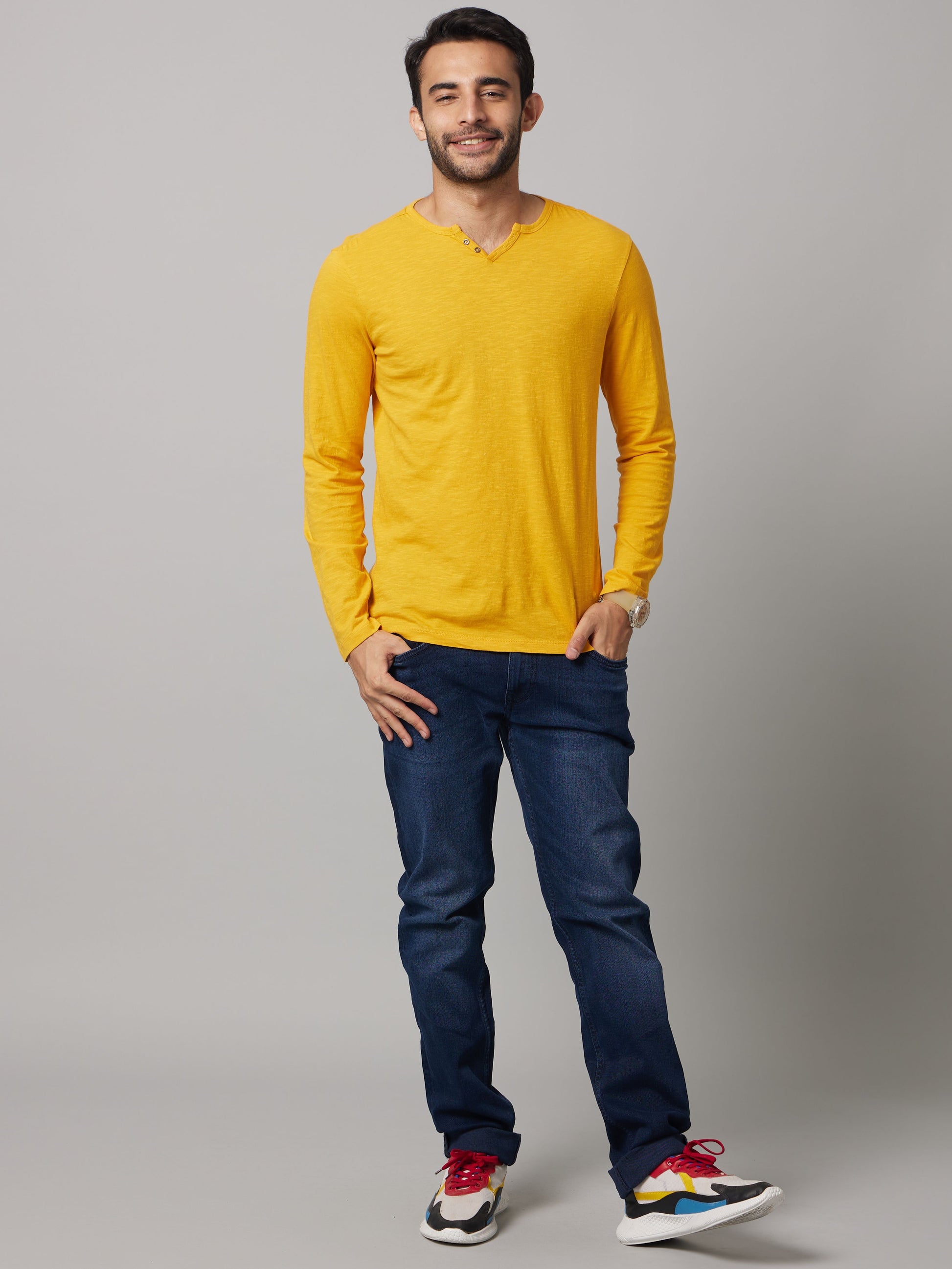Celio Men Yellow Solid Regular Fit Cotton T-Shirts